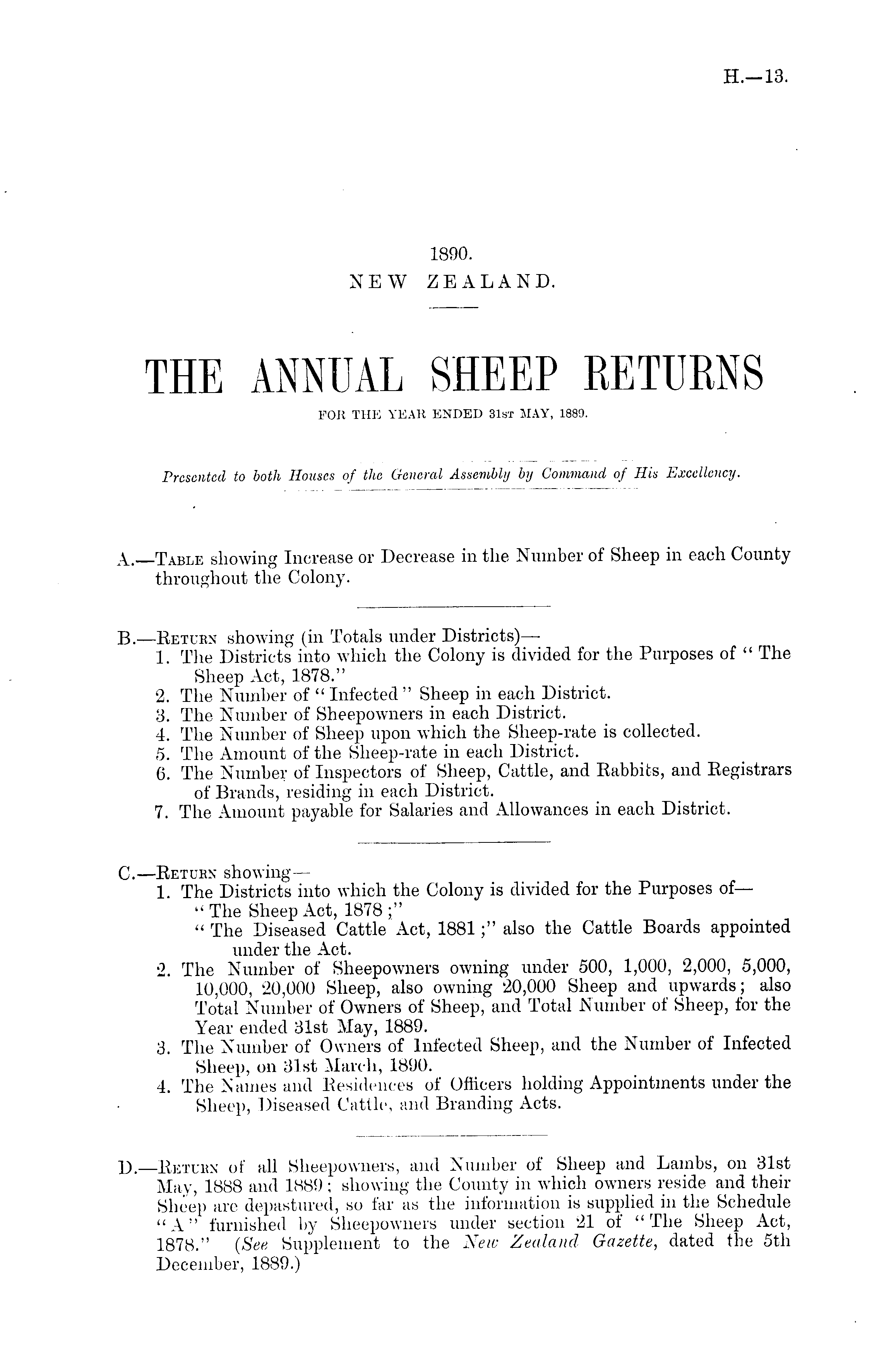 THE ANNUAL SHEEP RETURNS FOR THE YEAR ENDED 31st MAY, 1889.