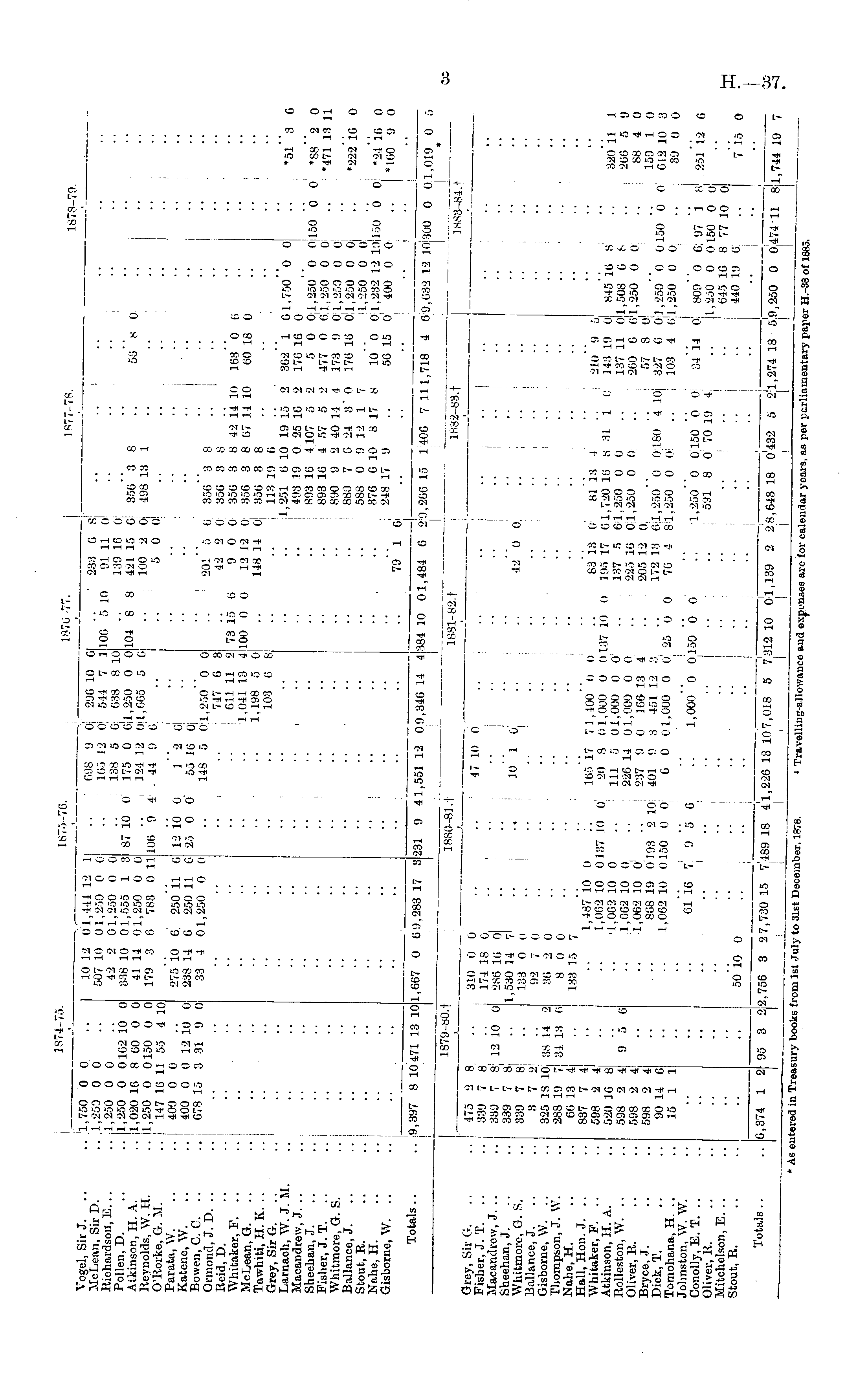 -to. 1875-76. 1876 77. 1-77 78. Vogel, Sir J. McLean, Sir D. Riohardsorl, E. .. Pollen, D. Atkinson, II. A. Reynolds, W. H. O'Rorke, G. M. Parata, W. Katene, W. Bowen, C. C. Ormond, J. D. .. Rcid, D. Whitaker, F. .. McLean, G. Tawhiti, II. K. .. Grey, Sir G. .. Larnach, W. 3. M. Maeandrew, J. .. Sheehan, J. Fisher, J. T. Whitmore, G. S. Ballance, J. Stout, R. Nahe, H. Gisborne, W. .. .. 1,750 0 0 .. 1,259 0 0 .. ,1,250 0 0 - - 1,250 0 0162 10 0 . . 1,020 16 8 60 0 0 .. 1,250 0 0150 0 0 .. i 147 16 11 55 4 10 400 0 0 400 0 0 12 10 0 078 15 8 31 9 0 1878-79. 10 12 o l.lil 12 1 507 10 0 1.259 (i (, 42 2 D1.259 0 0 358 10 Oil,555 1 3 41 14 01,250 0 0 179 8 6 783 0 11 698 9 0 296 10 6 165 12 0 544 7 1 138 5 6 638 8 10 87 10 0 175 0 6 1,250 0 o : 124 12 ii 1,665 5 6 L06 9 -1 4 1 0 6 106 5 10 104 8 - I 91 M 0 139 16 0 421 1.5 6 356 3 8 100 2 O 1:18 13 1 5 0 0 55 SO .. .. 275 10 0 250 11 6 238 14 6 250 11 G 33 4 0 1,250 0 0 12 10 0 12 6 25 0 0 55 16 0 148 5 0|1,250 0 0 717 6 3 •• 611 11 2 1.041 13 4 1.198 5 0 103 6 8 73 15 6 100 0 0 2 1! 5 0 350 3 s 42 2 0 356 3 8 9 O 0 350 3 8 42 It 10 12 12 0 3.56 3 8 67 I 1 LO 1 I > 1 1 o 356 3 8 LIS 19 6 1-251 6 10 19 15 2 103 10 0 25 10 2 893 16 4 107 5 2 898 16 1 57 5 2 890 9 2 40 1-1 I 880 7 6 2-1 8" o 0 9 12 I 7 376 6 10 8 17 8 2 18 17 9 79 1 6 - 163 0 6 \\ 60 18 0 362 1 61,75o"o 0 176 16 0 5 0 0 1.250 0 0 47, 0 I) 1.259 0 0 173 9 01,250 0 0 176 16 0 1,250 0 0 1,250 0 0 10 O o 1,232 12 10 56 15 O 400 0 0 .. .. .. .. .. .. *51 "3 6 .... 150 0 0 '88 "a 0 *471 18 11 .. "222 16 0 .. j 150 0 0 *24 16 0 j 7160 9 0 Totals .. .. 9,397 8 10 471 13 10: .. 9.397 8 10 471 13 10 1.667 0 6 9.283 17 3; 231 9 41,551 12 09,346 14 4! 581 10 01,484 6 2 i : 300 0 01,019 * ! , I 9,266 1-5 1406 7 111,718 4 69.652 12 10 1879-80.1 1880--81.1 1881 ~82.t L882 83.1 L883 84.1 Grey, Sir G. Fisher, J. T. .. Maeandrew, J. .. Sheehan, J. Whifcmore, G. S. Ballance, J. Gisborne, W. Thompson, J. \V. Xalic, 11. Hall, Hon. J. .. Whi taker, P. .. Atkinson, H. A. Rolleston, W. .. Oliver, R. Bryce, J. Dick, T. Tomohana, H. .. Johnston, W. \V. Conolly, E. T. Oliver, R. Mitehelson, E. .. Stout, 1!. 475 2 8 339 7 8 330 7 8 12 10 0 339 7 8 339 7 8 3 7 2 325 18 10 38 14 2 288 19 7 31 13 6 66 13 4 837 7 4 .1 520 16 8 598 2 4 9 5 6 598 2 4 ■598 2 4 90 14 6 15 11 310 0 0 .. .. 47 ,o „ 171 18 Oj 286 16 ii 1.530 14 7 .. .; jo"i o 188 oo.. 02 7 0.. 3!', 2 0.. BOO; 133 15 7 .. .. \\ 1,487 10 o :. 165 17 7 1. loo o o 1,062 10 0,187 IO o 20 s .. I.o.io o 0 137 LO o 1,062 10 O .. in :, oi.ooo o 0 1,002 10 o .. 226 14 0 1,000 0 o 1,062 10 0 .. 237 0 o 166 13 4 868 19 0193 2 1o 401 0 3 151 V 3 1,002 10 (U50 O 0 0 0 0 1.000 0 0 25 7) 0 61 16 7 0 5 G .. 1,000 0 0150 0 0 50 10 0 .'. '.', ' ' 3 0 81 13 4 .. 210 9 5 195 17 6 1,720 16 8 81 I 0 1 13 1!) 0 137 5 6 1 ,250 0 0 .. 137 11 0 225 16 o 1,250 0 0 .. 260 6 6 205 12 o .. .. 57 8 0 j 172 13 6 1.250 0 0 1770 4 10 327 6 O 76 i 8 1.250 0 0 .. 103 4 6 ! )0 0 150 0 o 34 14 o 591 8 0 70 l'i I .. •• 845 16 8 .. 320 11 1 1,508 ON .. 266 5 9 1.250 0 0 .. 88 4 0 159 1 0 I,250 0 0150 0 0 012 10 3 1,250 00 .. 39 ,j 0 so:) o 6 07 1 .-.' 251 12 6 1.2-,.) 0 0 159 o o 615 16 8 77 10 O 140 19 6 .. 7 15 0 .. .. Totals .. |2 ' 756 3 27 > 7ao " 7J489 18 41,226 13 10 7,018 5 7312 10 01,189 2~28,643"lS 0 432 5 21,274 18 5J9,250 0 "ol^ITi flT.111 let .lull- f n coir,*. T\ 1 -.,-,-,•, . ™ ... -. ~~ ■ ■ ! ,374 1 2 95 3 2 1,744 19 7 * As ei itered in Treasury books from 1st July to 31st December, 1878. I Travelling-allowance and exi >enses are for calendar years, as por parliamentary >or H.-