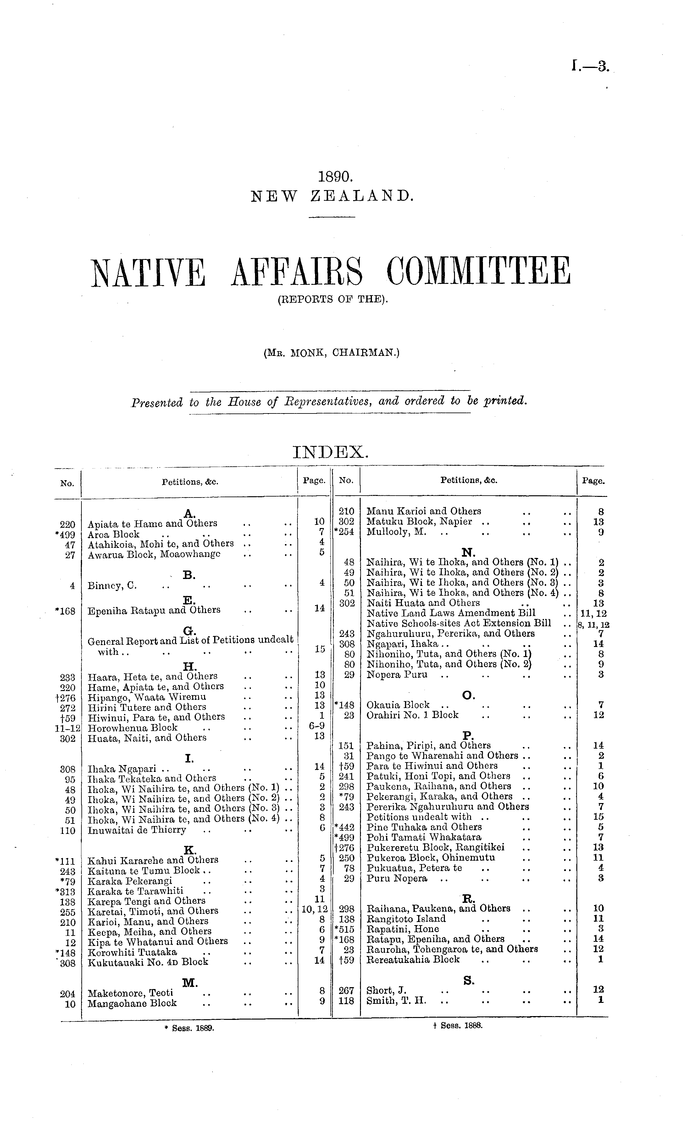 NATIVE AFFAIRS COMMITTEE (REPORTS OF THE). (Mr. MONK, CHAIRMAN.)