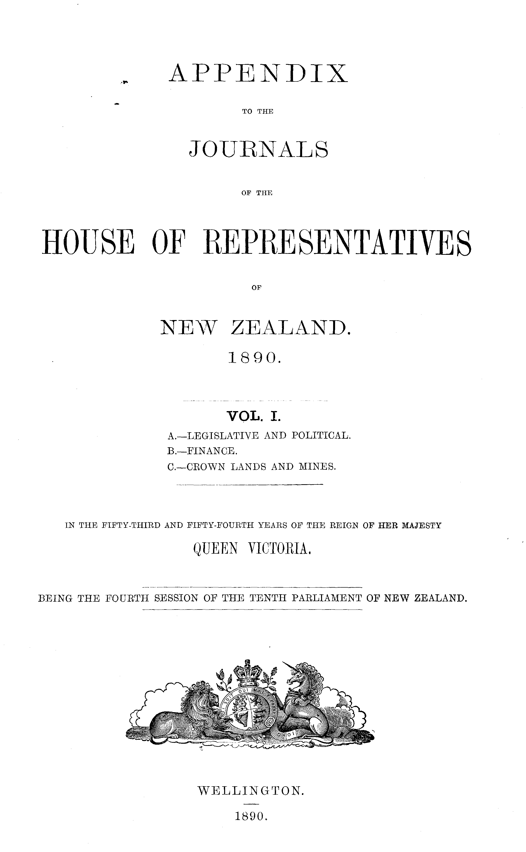 APPENDIX TO THE JOURNALS OF THE HOUSE OF REPRESENTATIVES OF NEW ZEALAND. 1890.