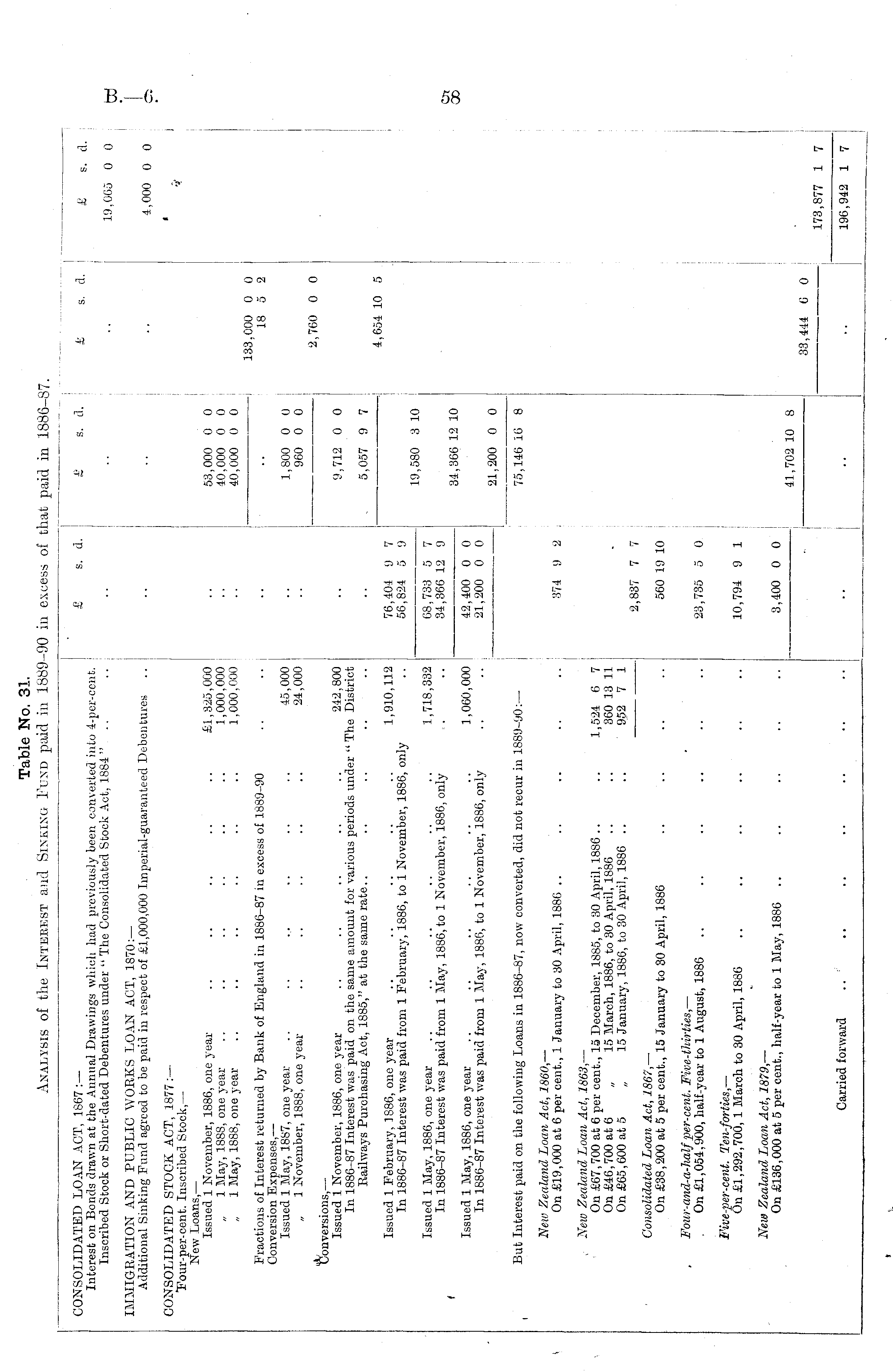 Table No. 31. Analysis of the Interest and Sinking Fund paid in 1889-90 in excess of that paid in 1886-87.