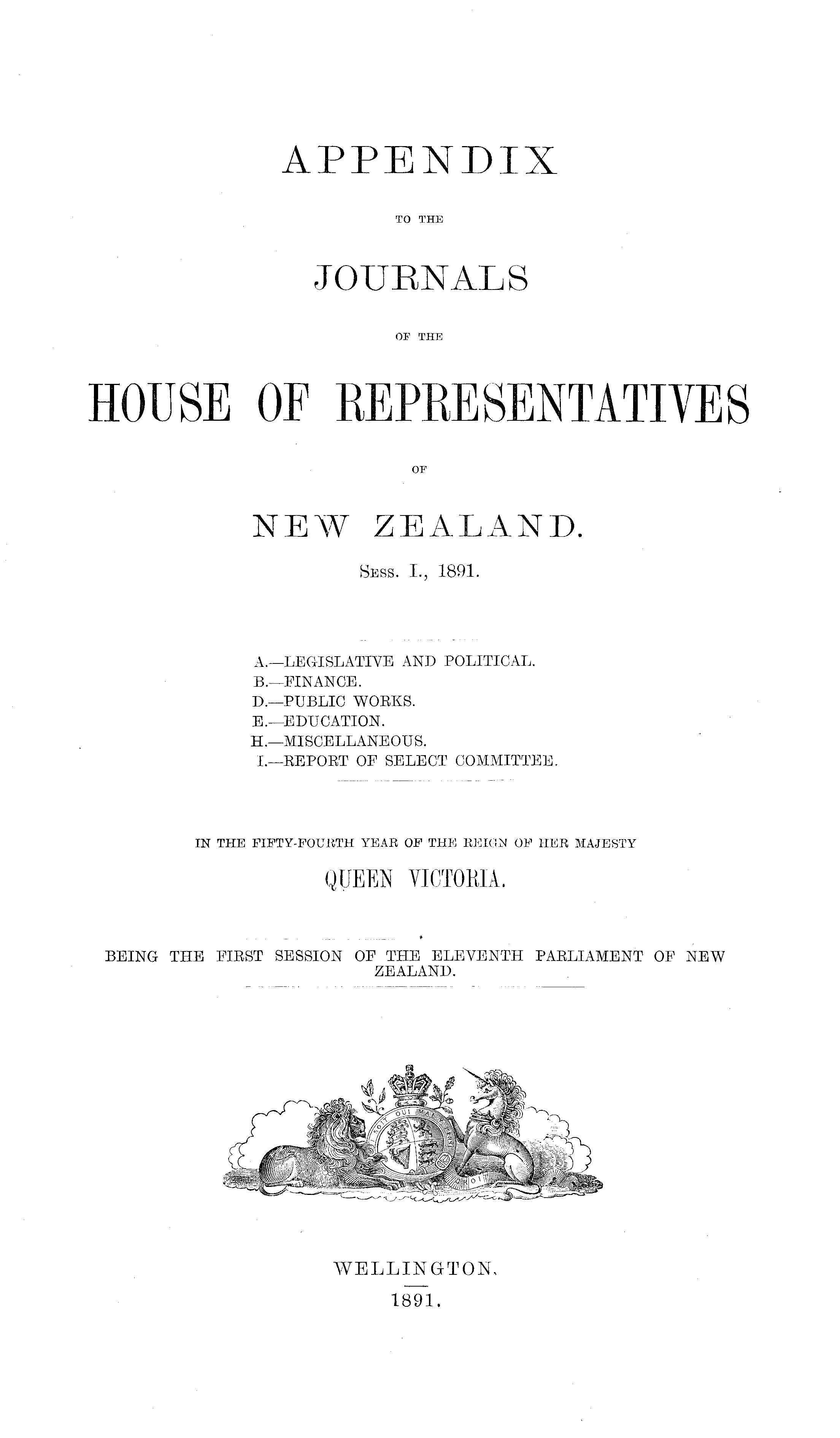 APPENDIX TO THE JOURNALS OF THE HOUSE OF REPRESENTATIVES OF NEW ZEALAND. Sess. I., 1891.