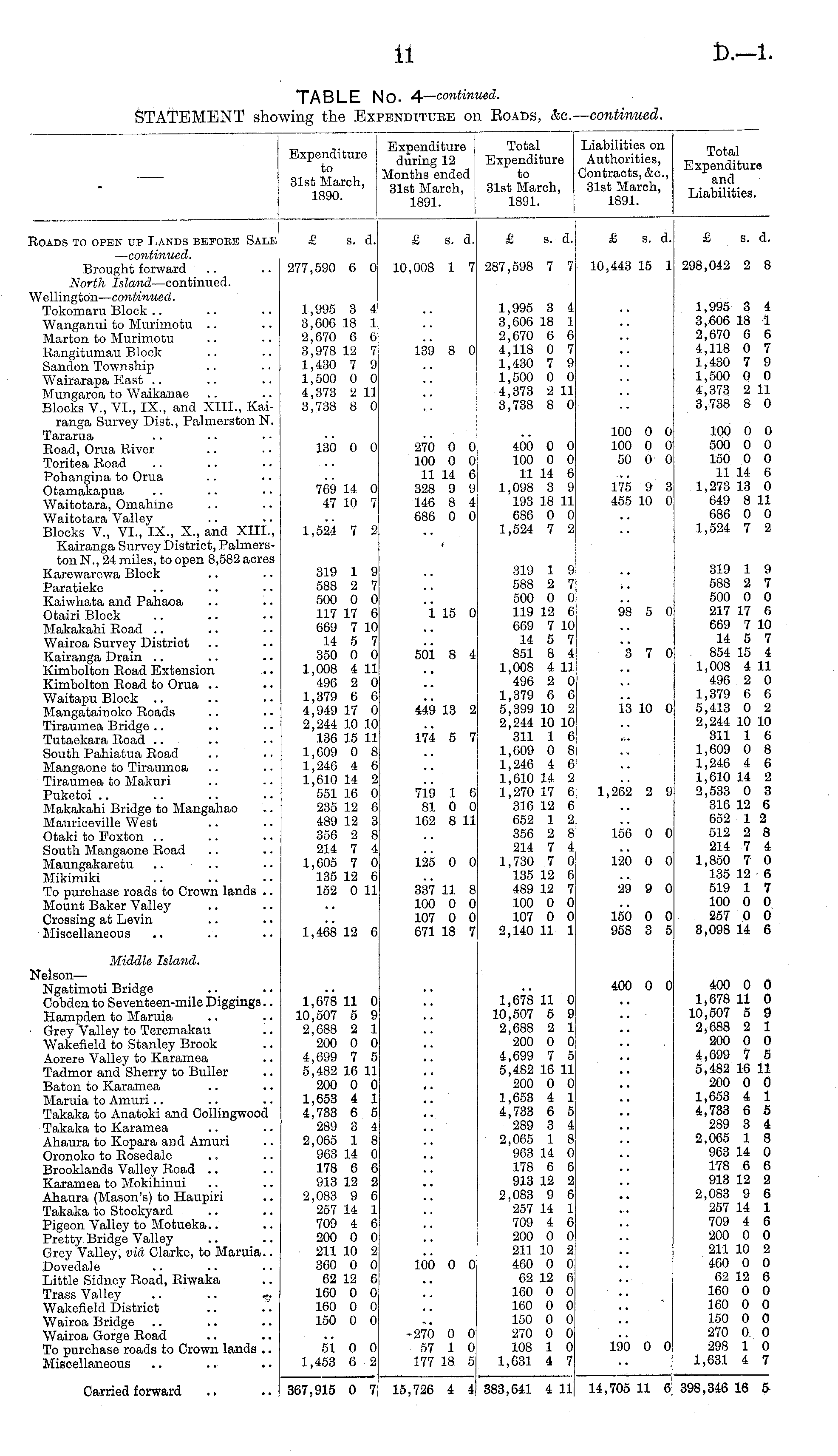 TABLE NO. 4— continued. STATEMENT showing the Expenditure on Roads, &c.— continued.
