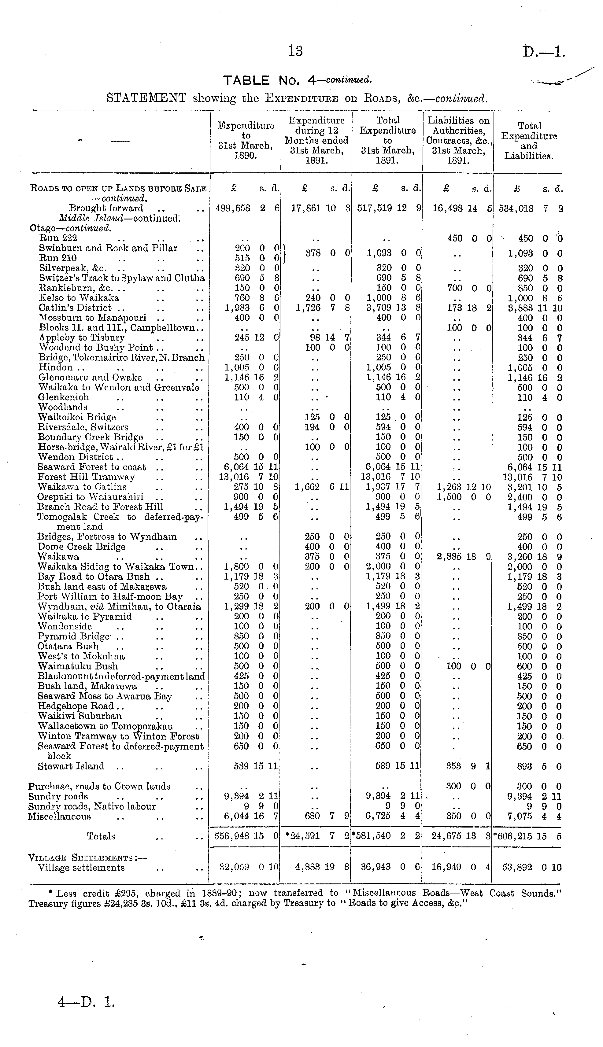 TABLE NO. 4— continued. STATEMENT showing the Expenditure on Roads, &c.— continued.