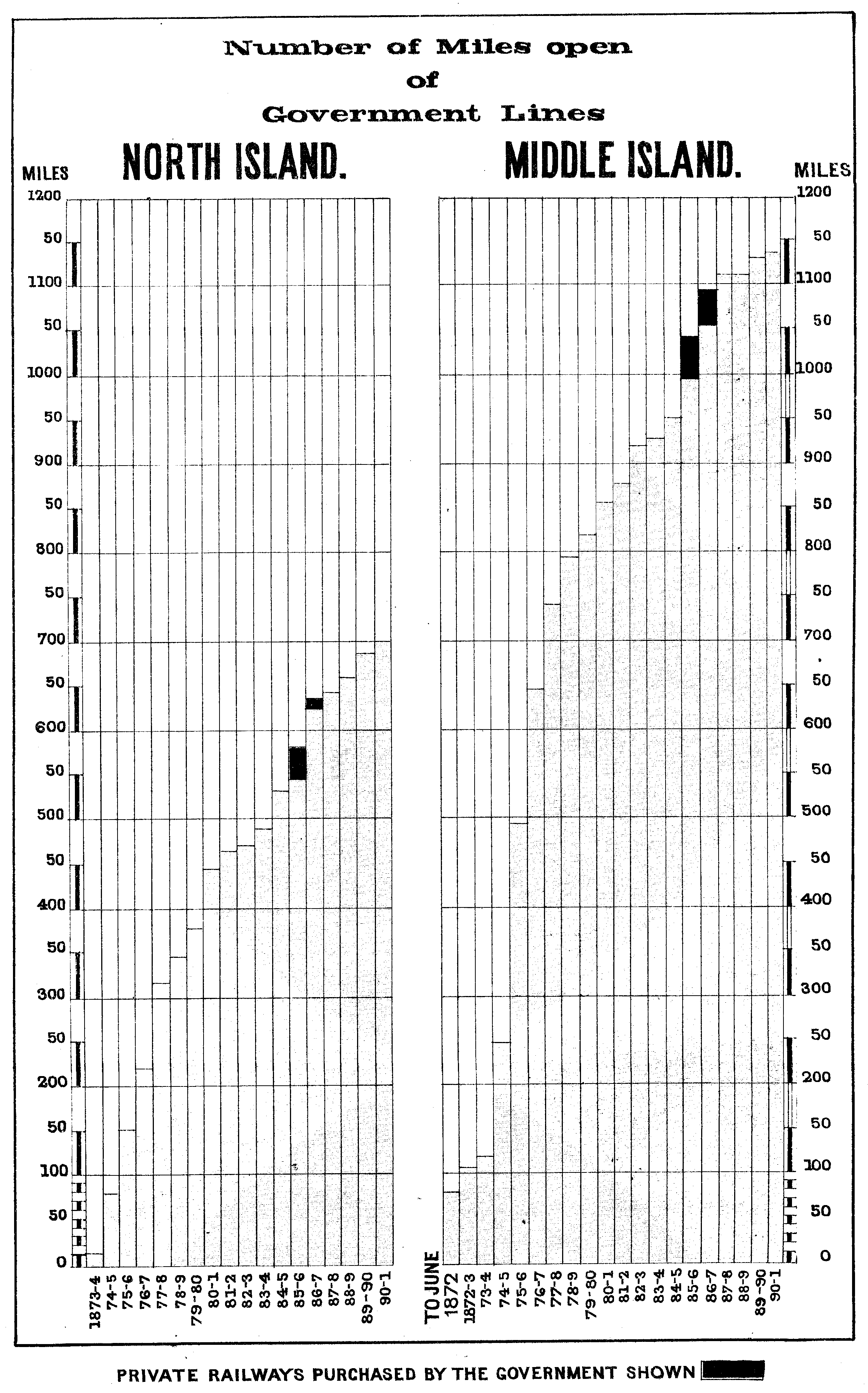 Number of Miles open of Government Lines NORTH ISLAND. MIDDLE ISLAND.