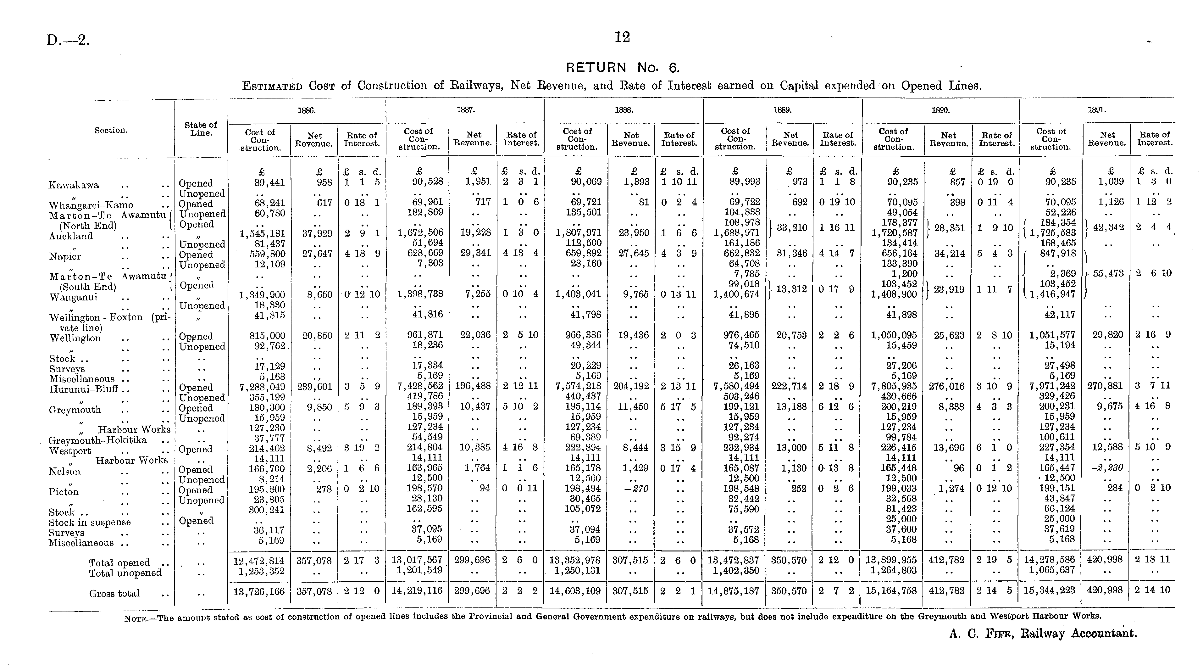 RETURN No. 6. Estimated Cost of Construction of Railways, Net Revenue, and Rate of Interest earned on Capital expended on Opened Lines.