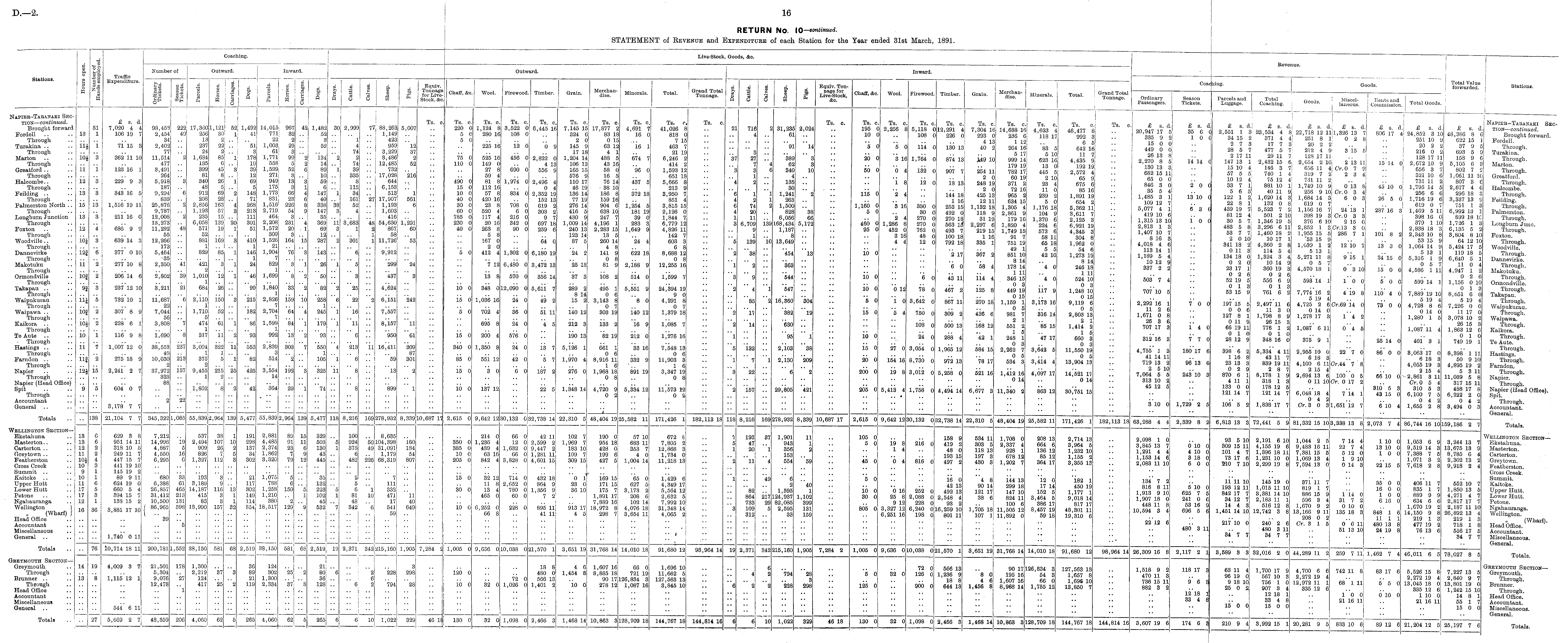 RETURN No. 10-cintinued. STATEMENT of Revenue and Expenditue of each Station for the Year ended 31st March, 1891.