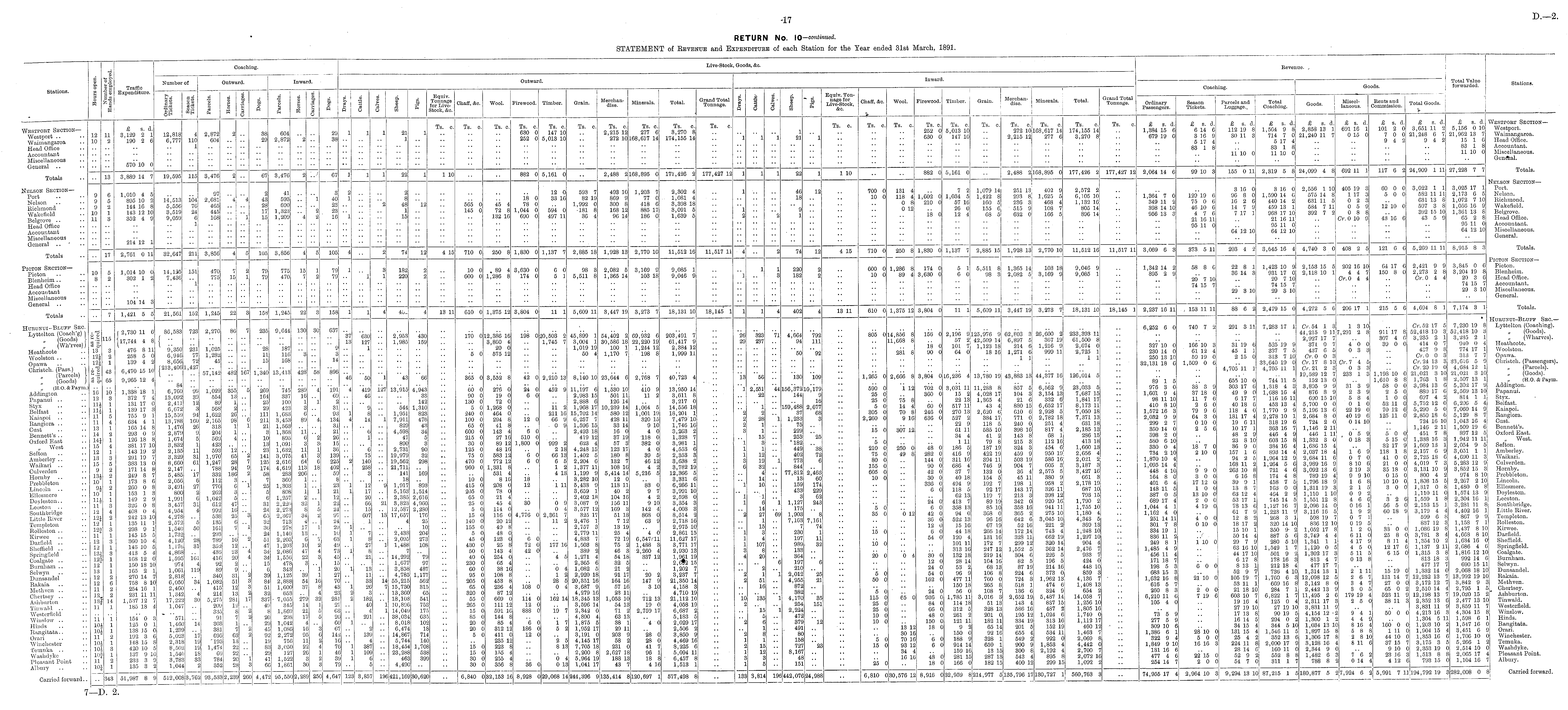 RETURN NO. 10-continued. STATEMENT of Revenue and Expenditure of each Station for the Year ended 31st March, 1891.