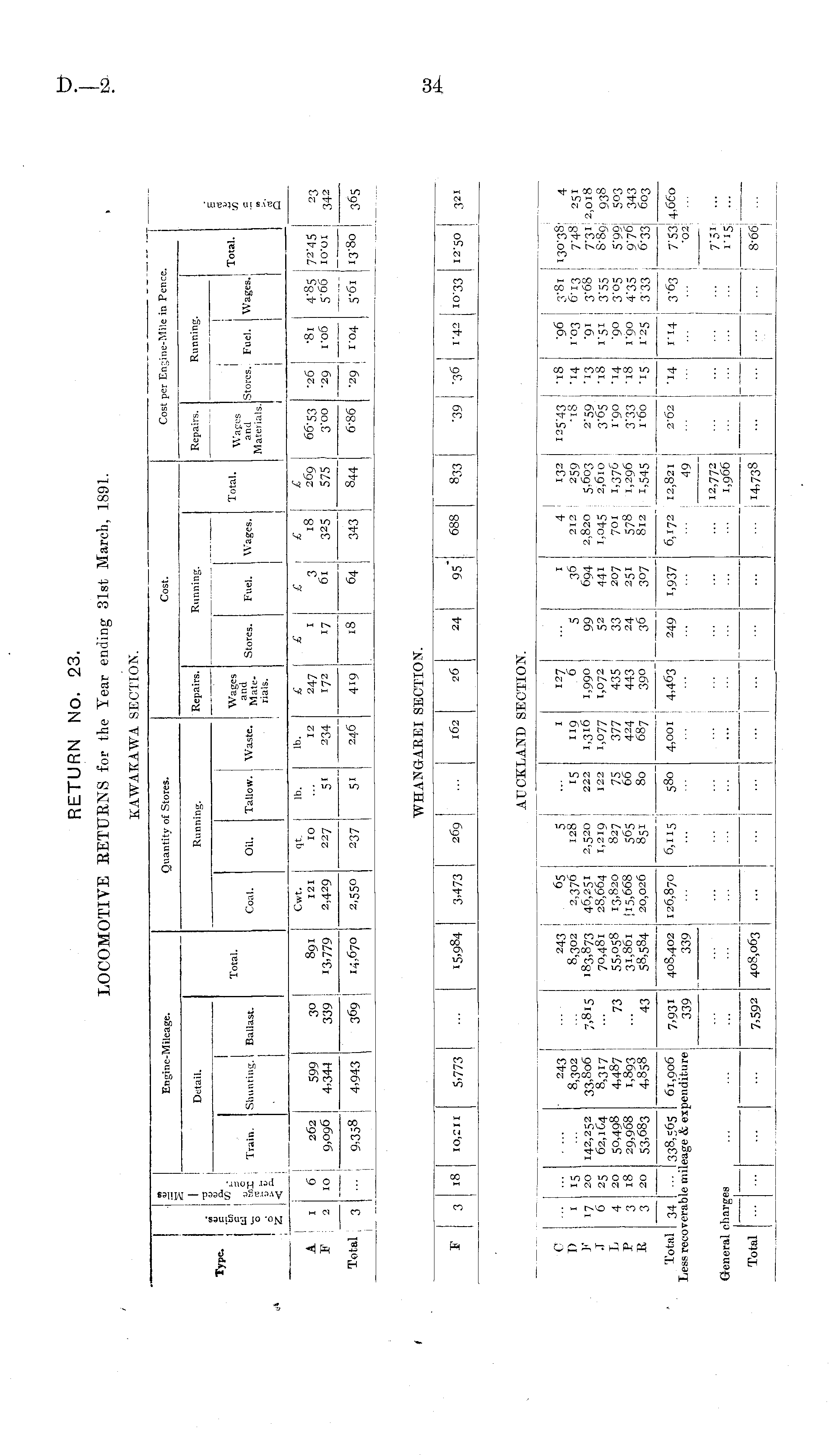 RETURN NO. 23. LOCOMOTIVE RETURNS for the Year ending 31st March, 1891. KAWAKAWA SECTION.