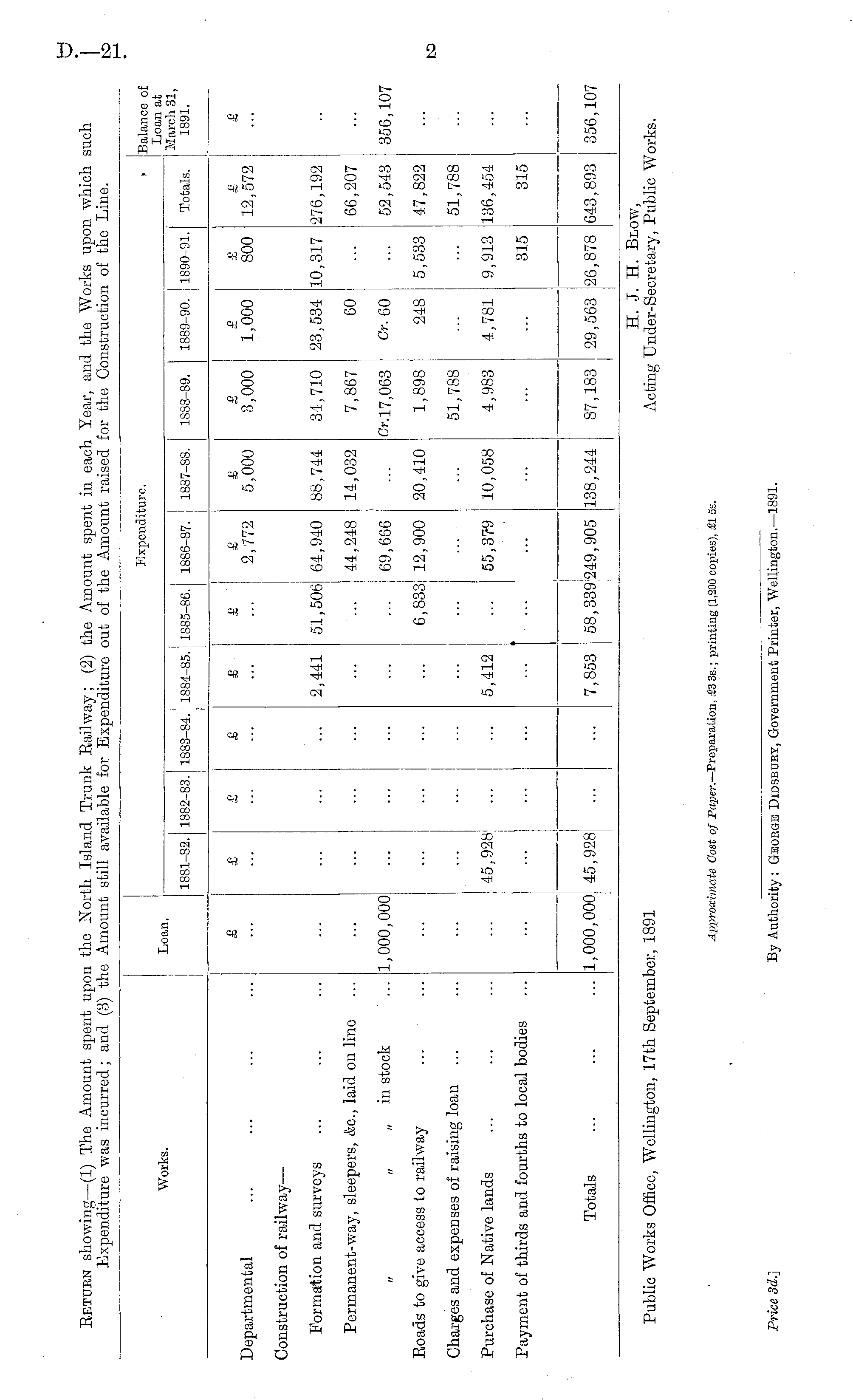 H. J. H. Blow, Public Works Office, Wellington, 17th September, 1891 Acting Under-Secretary, Public Works. Approximate Cost of Pa/per.— Preparation, £3 35,; printing (1,200 copies), £1 Ds.