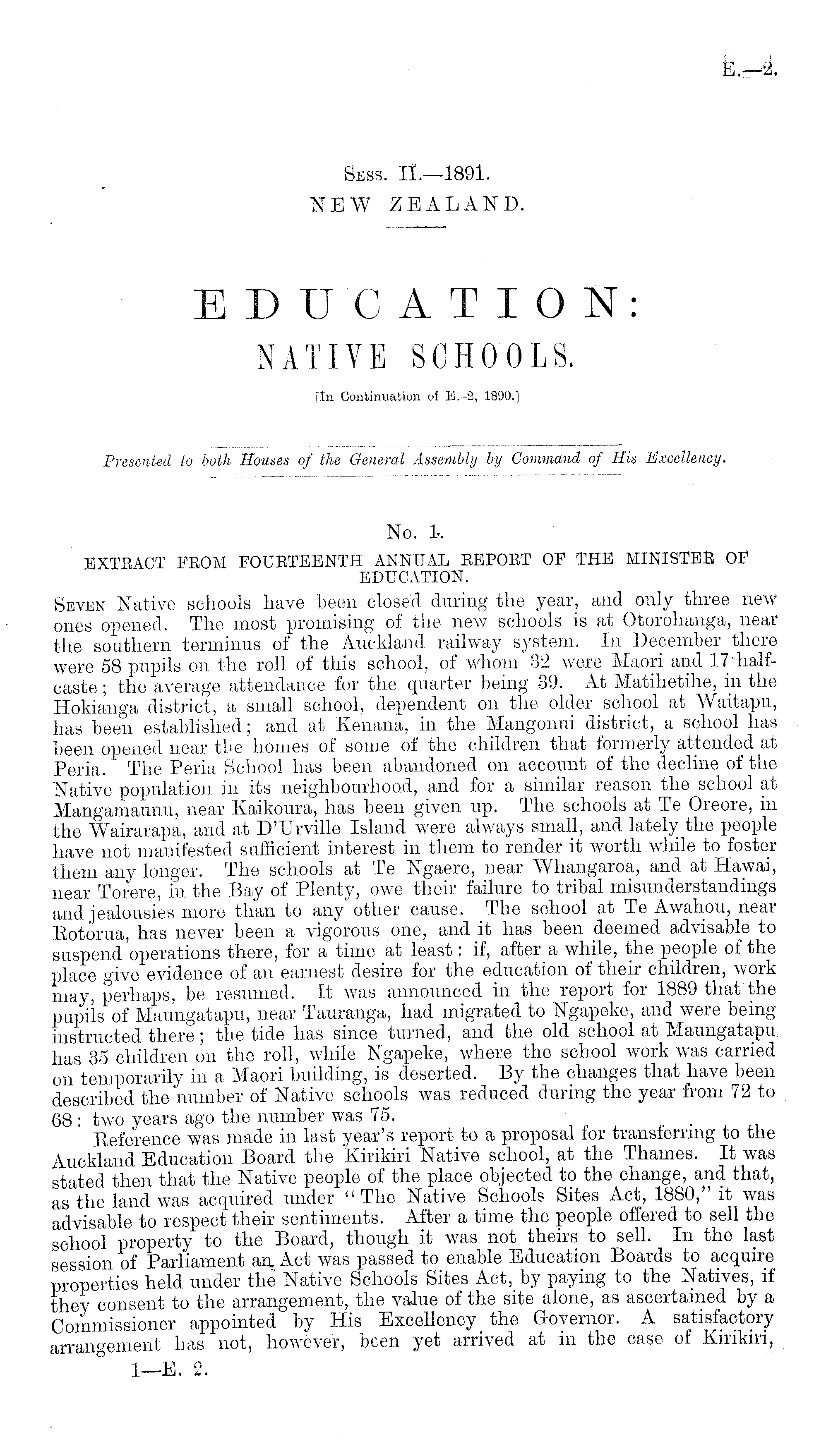 EDUCATION: NATIVE SCHOOLS. [In Continuation of E.-2, 1890.]