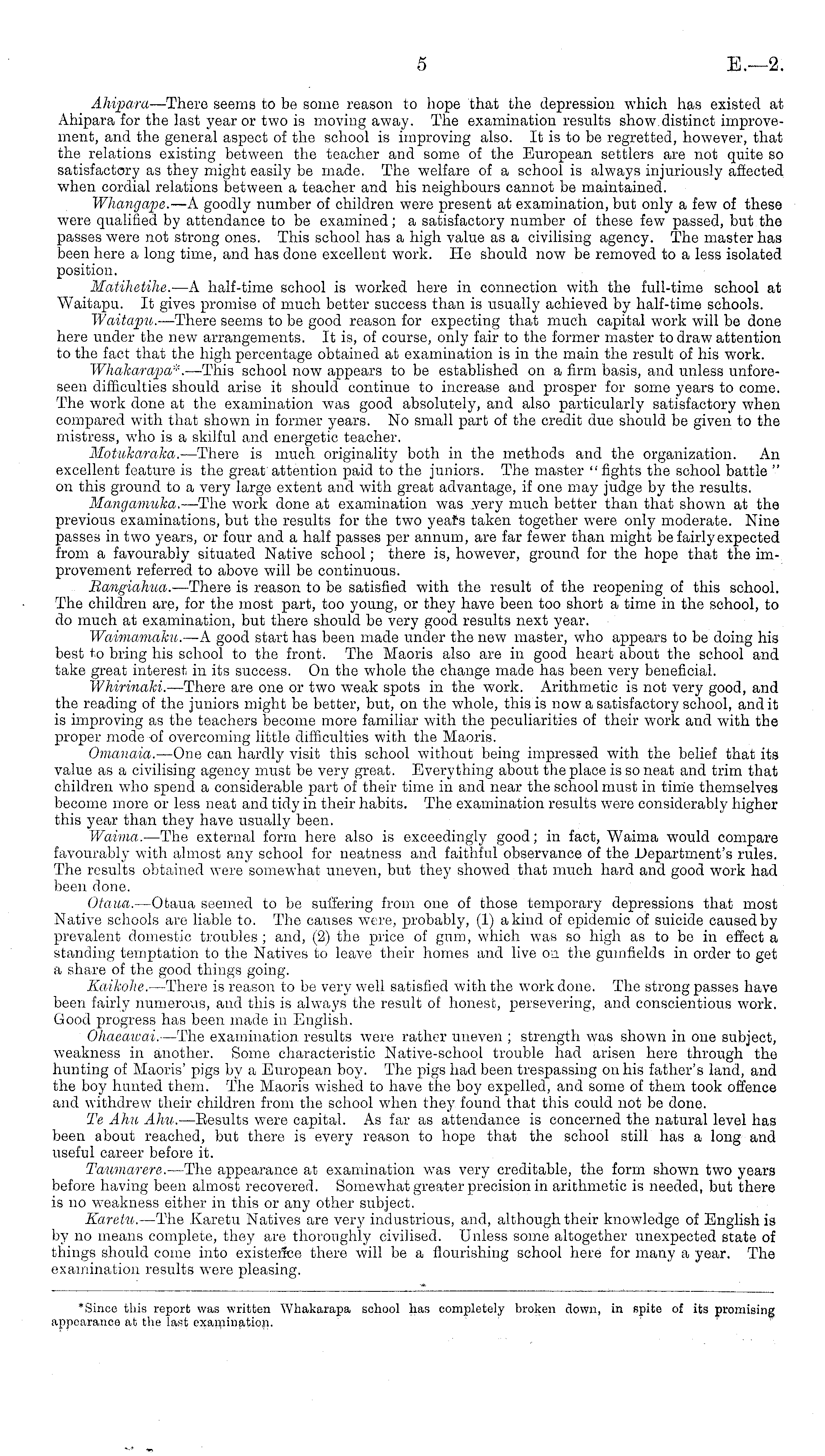 *Since this report was written Whakarapa school has completely broken down, in spite of its promising appearance at the last examination.