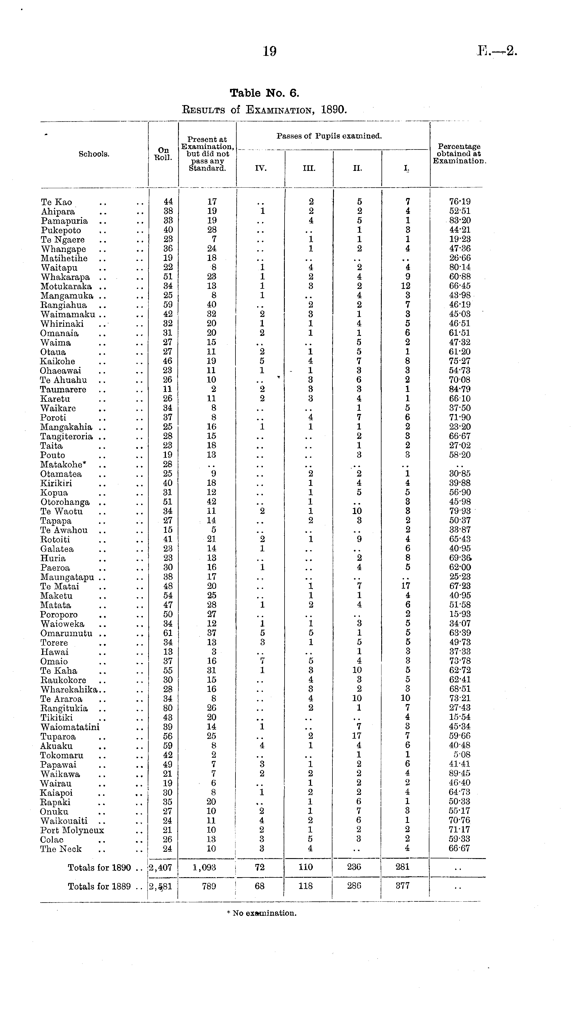 Schools. B On Present at Examination, but did not pass any Standard. IV. Passes of Pupi III. ils examined. Percentage obtained at Examination 11. I, Te Kao .. .. 44 Ahipara .. .. 38 Pamapuria .. .. 33 Pukepoto .. .. 40 Te Ngaere .. .. 23 Whangape .. .. 36 Matihetihe .. .. 19 Waitapu .. .. 22 Whakarapa .. .. 51 Motukaraka .. .. 34 Mangamuka .. .. 25 Rangiahua .. .. 59 Waimamaku .. .. 42 Whirinaki .. .. 32 Omanaia .. .. 31 Waima .. .. 27 Otaua .. .. 27 Kaikohe .. .. 46 3haeawai .. .. 23 re Ahuahu .. .. 26 raumarere .. .. 11 Karetu .. .. 26 Waikare .. .. 34 Poroti .. .. 37 Mangakahia .. .. 25 Pangiteroria .. .. 28 raita .. .. 23 Pouto .. .. 19 Matakohe* .. .. 28 Otamatea .. .. 25 Kirikiri .. .. 40 Kopua .. .. 31 Otorohanga .. .. 51 Te Waotu .. .. 34 Papapa .. .. 27 Pe Awahou .. .. 15 Rotoiti .. .. 41 Galatea .. .. 23 Huria .. .. 23 Paeroa .. .. 30 Maungatapu .. .. 38 re Matai .. .. 48 Maketu .. .. 54 Matata .. .. 47 Poroporo .. .. 50 Waioweka .. .. 34 Omarumutu .. .. 61 Porere .. .. 34 Hawai .. .. 13 Omaio .. .. 37 Pe Kaha .. .. 55 Raukokore .. .. 30 Wharekahika.. .. 28 Pe Araroa .. .. 34 Rangitukia .. .. 80 Tikitiki .. .. 43 Waiomatatini .. 39 Puparoa .. .. 56 ikuaku .. .. 59 rokomaru .. .. 42 Papawai .. .. 49 Waikawa .. .. 21 Wairau .. .. 19 Kaiapoi .. .. 30 Rapaki .. .. 35 Onuku .. .. 27 Waikouaiti .. .. 24 Port Molyneux .. 21 Dolac .. .. 26 Phe Neck .. .. 24 17 19 19 28 7 24 18 8 23 13 8 40 32 20 20 15 11 19 11 10 2 11 8 8 16 15 18 13 i l l l l 2 1 2 2 2 4 1 1 4 2 3 2 3 1 1 5 2 5 1 1 2 2 4 2 4 2 1 4 1 5 5 7 3 6 3 4 1 7 1 2 1 3 7 4 1 3 1 4 4 9 12 3 7 3 5 6 2 1 8 3 2 1 1 5 6 2 3 2 3 76-19 52-51 83-20 44-21 19-23 47-36 26-66 80-14 60-88 66-45 43-98 46-19 45-03 46-51 61-51 47-32 61-20 75-27 54-73 7008 84-79 6610 37-50 71-90 23-20 60-67 27-02 ,58-20 2 5 1 1 4 1 3 3 3 2 2 "l 4 1 9 18 12 42 11 14 5 21 14 13 16 17 20 25 28 27 12 37 13 3 16 31 15 16 8 26 20 14 25 8 2 7 7 6 2^ 10 11 10 18 10 2 1 1 1 1 2 2 4 5 i 4 5 3 8 2 2 4 6 8 5 30-85 39-88 56-90 45-98 7993 50-37 33-87 65-43 40-95 69-36 62-00 25-23 67-23 40-95 51-58 15-93 34-07 63-39 49-73 37-33 73-78 62-72 62-41 68-51 73-21 27-43 15-54 45-34 ■59-66 40-48 5-08 41-41 89-45 46-40 64-73 50-33 55-17 70-76 71-17 59-33 66-67 2 io 3 *2 1 1 9 1 2 4 i l 2 7 1 4 17 4 6 2 5 5 5 3 3 5 5 3 10 7 4 8 7 6 1 6 4 2 4 1 3 1 2 2 4 1 1 5 3 7 1 1 5 1 5 3 4 3 4 2 3 1 5 1 4 10 3 2 10 1 i 4 3 2 2 1 1 2 1 2 1 1 2 1 5 4 7 17 4 1 2 2 2 2 6 7 6 2 3 i 2 4 2 3 3 Totals for 1890 .. |2,407 110 236 2,407 1,093 72 281 Totals for 1889 .. 2,581 2,581 789 68 118 286 377 :o examinal ion.