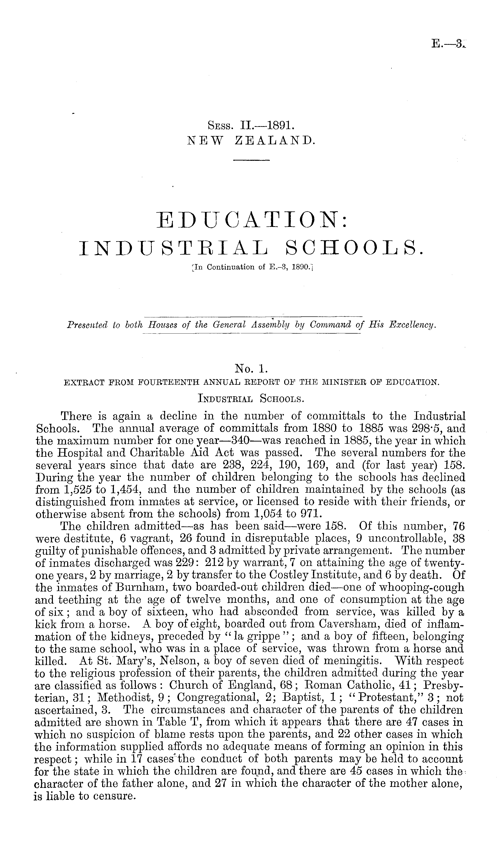 EDUCATION: INDUSTRIAL SCHOOLS. [In Continuation of E.-3, 1890.]