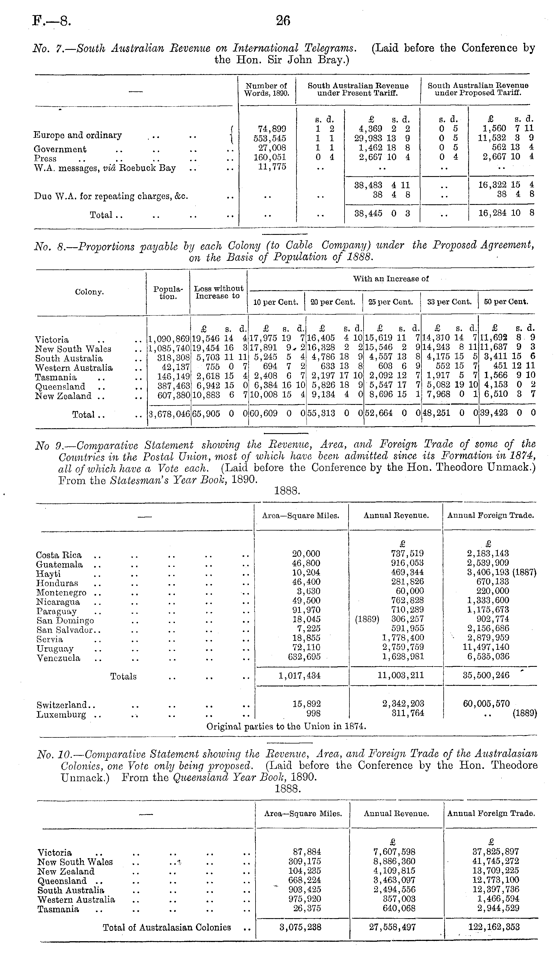 No. 7. — South Australian Revenue on International Telegrams. (Laid before the Conference by the Hon. Sir John Bray.)