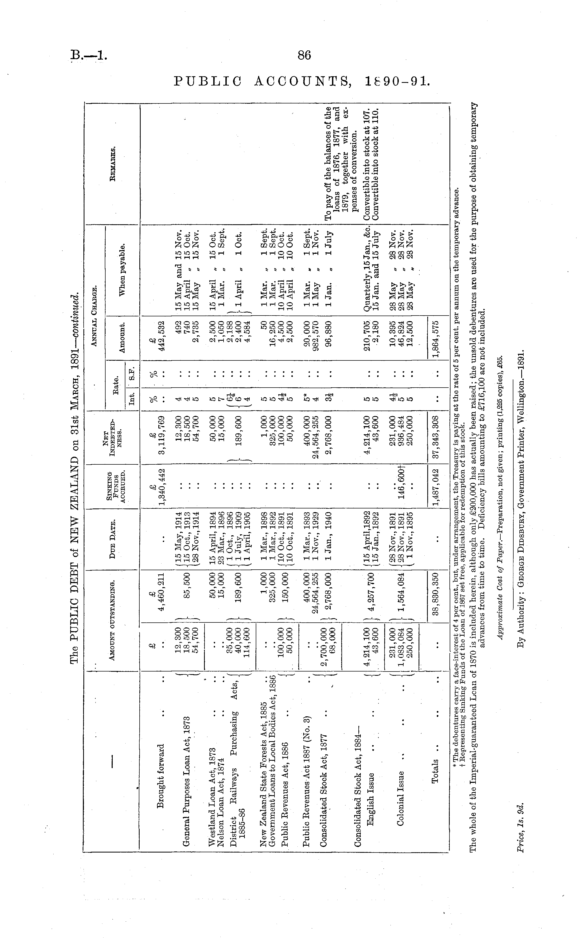 The PUBLIC DEBT of NEW ZEALAND on 31st March, 1891— continued.