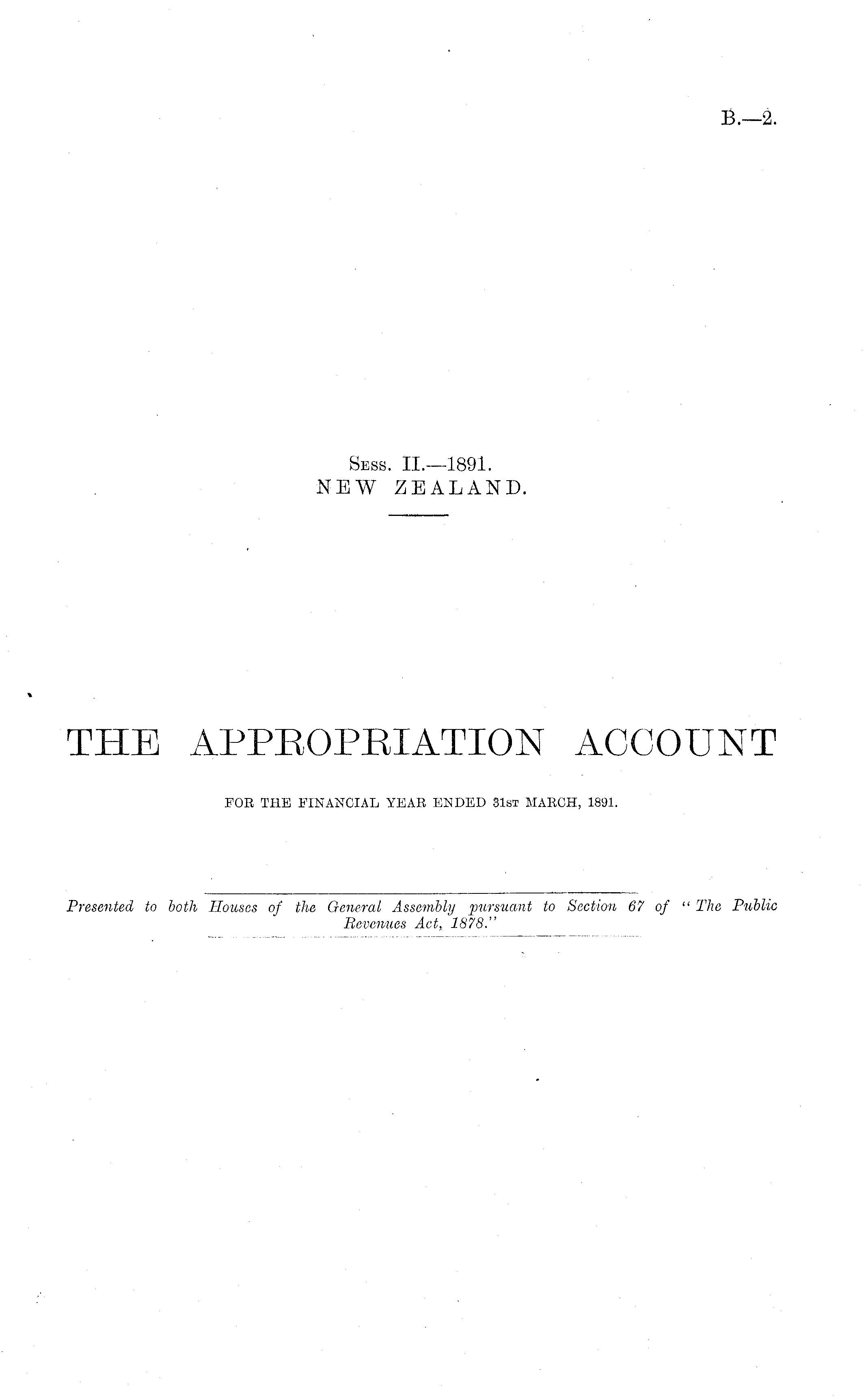 Presented to both Houses of the General Assembly pursuant to Section 67 of " The Public Revenues Act, 1878."