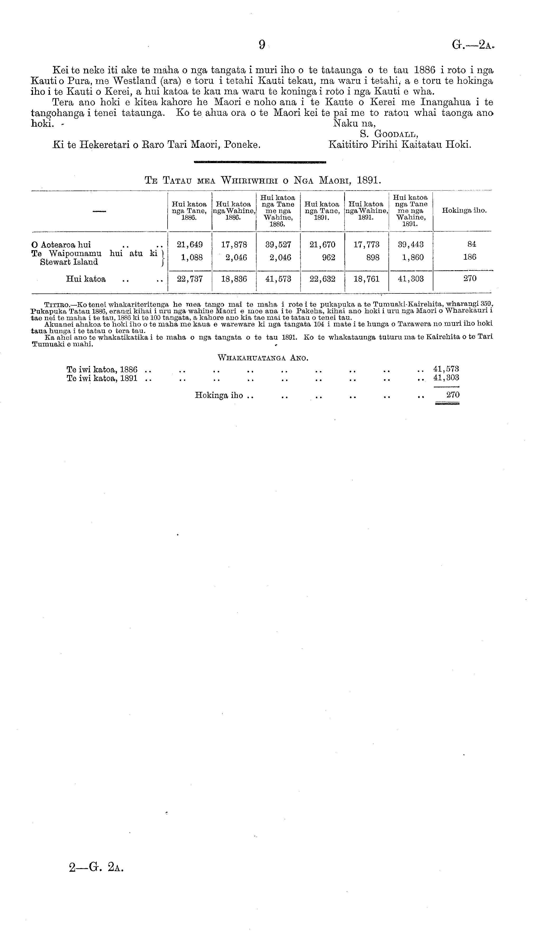 Kei te neke iti ake te maha o nga tangata i muri iho o te tataunga o te tau 1886 i roto i nga Kautio Pura, me Westland (ara) c toru i tefcahi Kauti tekau, ma warn i tetahi, a c toru te hokinga iho i te Kauti o Kerei, a hui katoa te kau ma waru te koninga i roto i nga Kauti c wha. Tera ano hoki c kitea kahore he Maori c noho ana i te Kaute o Kerei me Inangahua i te tangohanga i tenei tataunga. Ko te ahua ora ote Maori kei te pai me to ratou whai taonga an& hoki. - Naku na, S. G-OODALL, Xi te Hekeretari o Earo Tari Maori, Poneke. Kaititiro Pirihi Kaitatau Hoki.