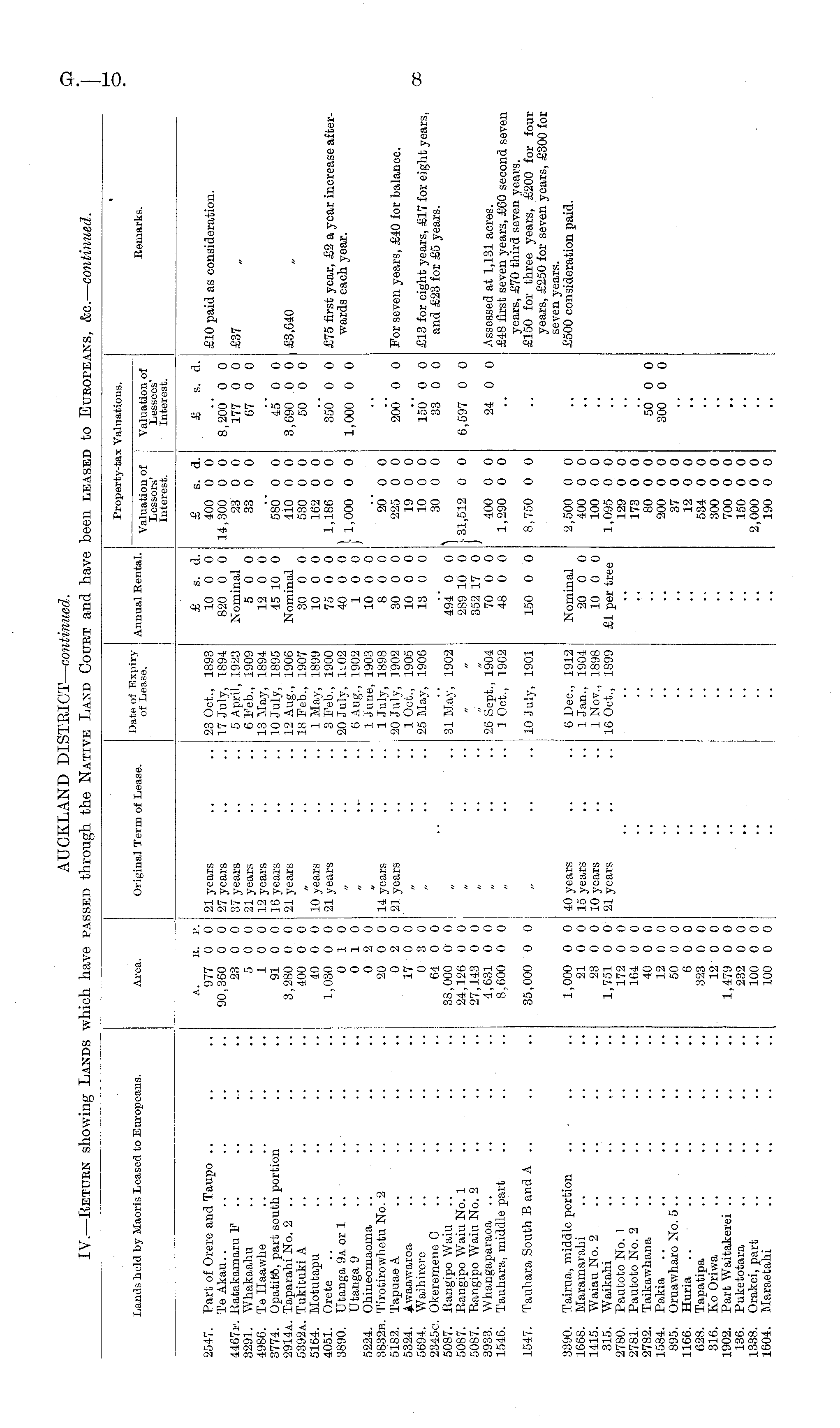AUCKLAND DISTRICT—continued. IV.—Return showing Lands which have passed through the Native Land Court and have been leased to Europeans, &c.— continued.