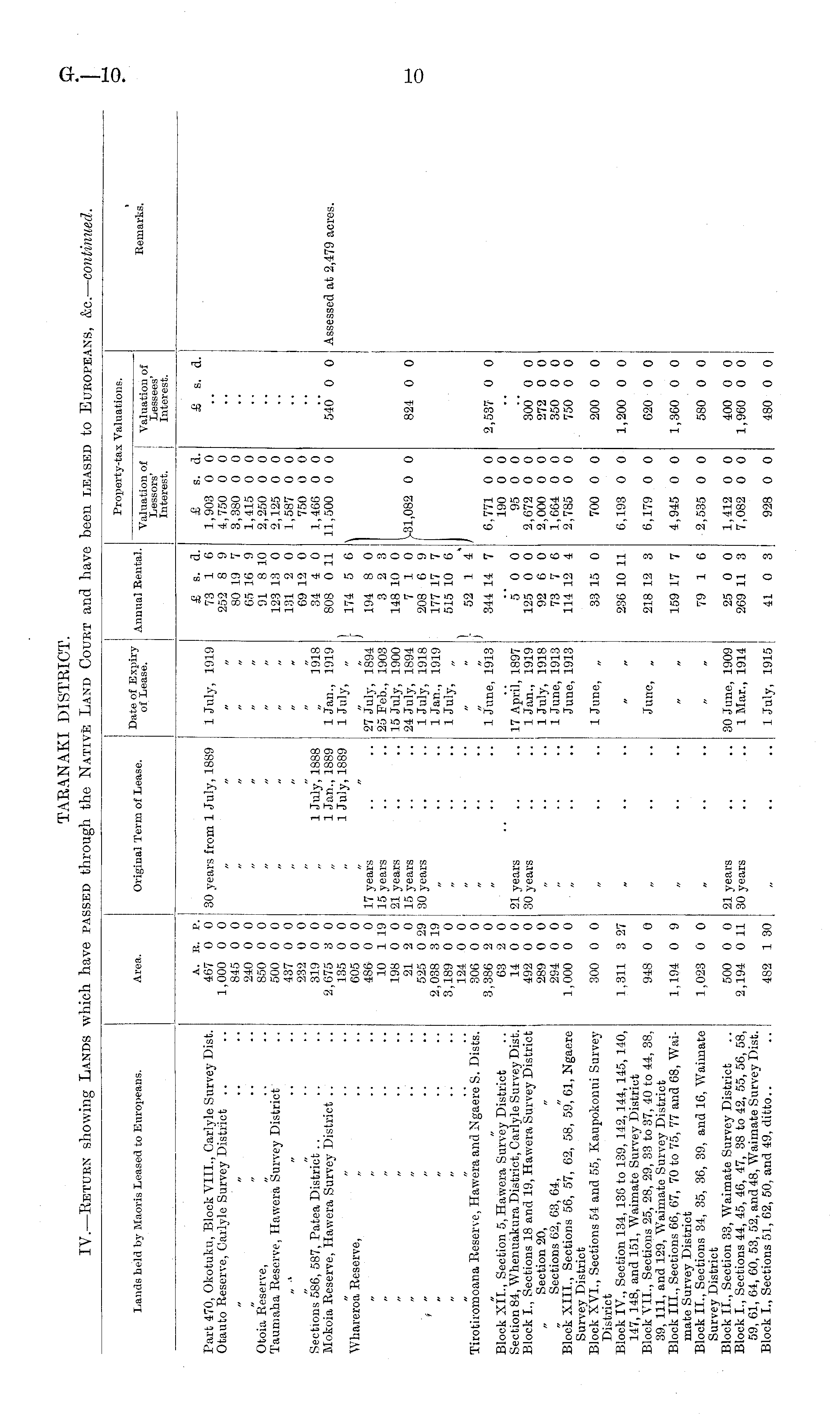 TARANAKI DISTRICT. IV.—Return showing Lands which have passed through the Native Land Court and have been leased to Europeans, &c.— continued.
