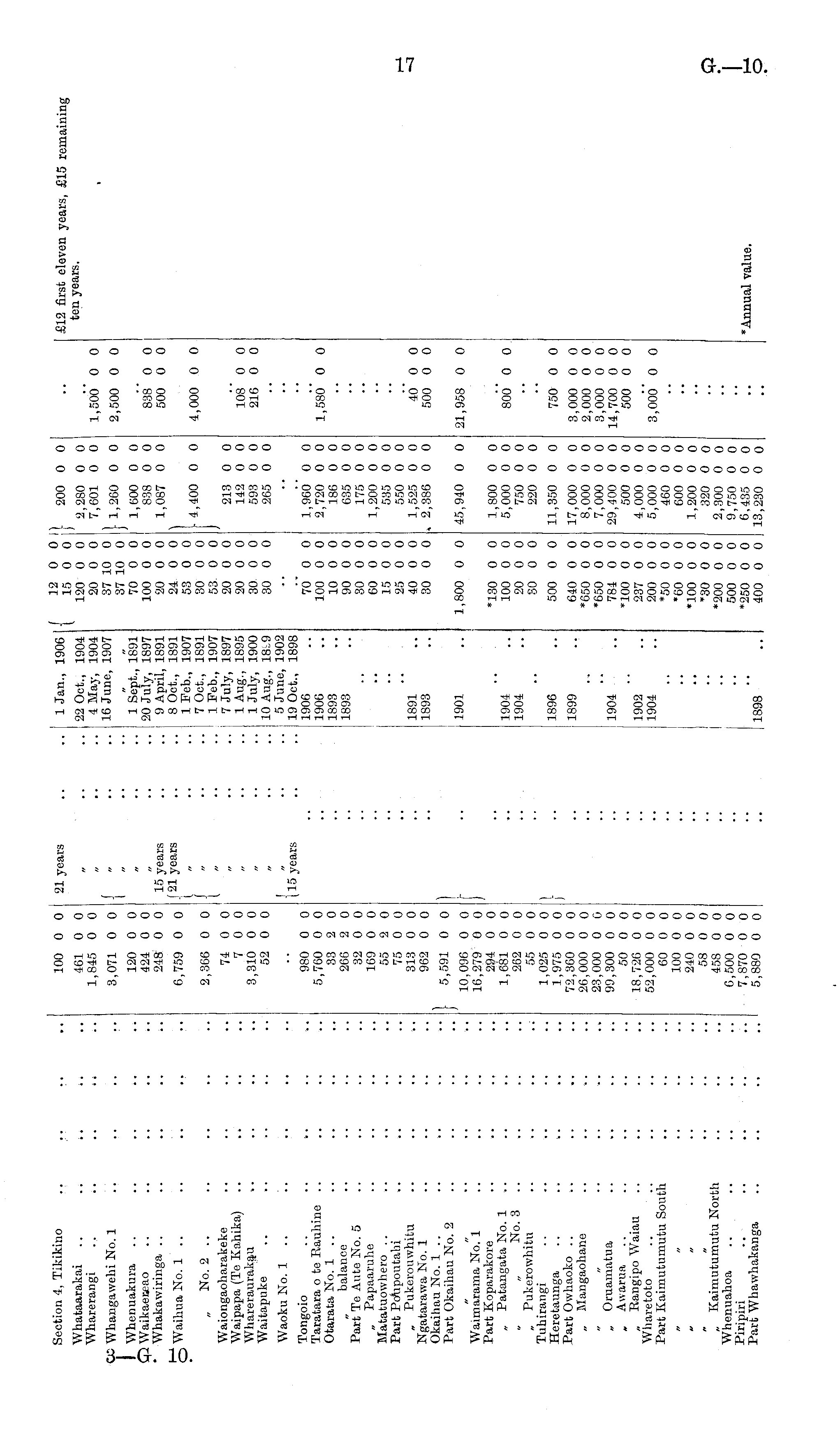 Section 4, Tikikino Whataarakai Wharerangi CO Whangawehi No. 1 I Whenuakura Waikaeceao * Whakawiringa .. i i 100 0 0 461 0 0 1,845 0 0 3,071 0 0 120 0 0 424 0 0 248 0 0 21 years f 1 15 years f21 years i 1 Jan., 1906 22 Oct., 1904 4 May, 1904 16 June, 1907 1 Sept., 1891 20 July, 1897 9 April, 1891 8 Oct., 1891 1 Feb., 1907 7 Oct., 1891 1 Feb., 1907 7 July, 1897 1 Aug., 1895 1 July, 1900 10 Aug., 1819 5 June, 1902 19 Oct., 1898 1906 1906 1893 1893 ( 12 0 0 15 0 0 120 0 0 20 0 0 37 10 0 37 10 0 70 0 0 100 0 0 20 0 0 24 0 0 53 0 0 30 0 0 53 0 0 20 0 0 20 0 0 30 0 0 30 0 0 I 200 0 0 2,280 0 0 7,601 0 0 I 1,260 0 0 1,600 0 0 838 0 0 1,087 0 0 1,5O6" 0 0 2,500 0 0 838 0 0 500 0 0 £12 first eleven years, £15 remaining ten years. i q Waihua No. 1 .. 6,759 0 0 I 4,400 0 0 4,000 0 0 „ No. 2 .. 2,366 0 0 Waiongaoharakeke Waipapa (Te Kahika) Whareraurakau >. Waitapuke 74 0 0 7 0 0 3,310 0 0 52 0 0 213 0 0 142 0 0 593 0 0 265 0 0 108' 0 0 216 0 0 Waoku No. 1 (15 years Tongoio Taratara o te Rauhine .. Otarata No. 1 .. „ balance Part Te Ante No. 5 „ Papaaruhe Matatuowhero Part Poiipoutahi „ Pukerouwhitu Ngatarawa No. 1 Okailiau No. 1 .. Part Okaihau No. 2 980 0 0 5,760 0 0 33 2 0 266 2 0 32 0 0 169 0 0 55 2 0 75 0 0 313 0 0 962 0 0 70 0 0 100 0 0 10 0 0 90 0 0 30 0 0 60 0 0 is o o 25 0 0 40 0 0 30 0 0 1,960 0 0 2,720 0 0 186 0 0 635 0 0 175 0 0 1,200 0 0 535 0 0 550 0 0 1,525 0 0 , 2,386 0 0 1,580* 0 0 1891 1893 40 0 0 500 0 0 ) 5,591 0 0 f 1901 1,800 0 0 45,940 0 0 21,958 0 0 Waimarama No. 1 Part Koparakore „ Patangata No. 1 No. 3 .. „ Pukerowhitu Tuhirangi Heretaunga Part Owhaoko „ Mangaohane „ Ot'uamatua „ Awarua „ Eangipo Waiau Wharetoto Part Kaimutumutu South 10,096 0 0 16,279 0 0 294 0 0 1,681 0 0 262 0 0 55 0 0 1,025 0 0 1,975 0 0 72,360 0 0 26,000 0 0 23,000 0 0 99,300 0 0 50 0 0 18,720 0 0 52,000 0 0 60 0 0 100 0 0 240 0 0 58 0 0 458 0 0 0,500 0 0 7,870 0 0 5,880 0 0 ) 1904 1904 1896 1899 1904 •130 0 0 100 0 0 20 0 0 30 0 0 500 0 0 640 0 0 *650 0 0 •650 0 0 784 0 0 *100 0 0 237 0 0 200 0 0 *50 0 0 •60 0 0 •100 0 0 •30 0 0 •200 0 0 500 0 0 •250 0 0 400 0 0 1,800 0 0 5,000 0 0 750 0 0 220 0 0 11,350 0 0 17,000 0 0 8,000 0 0 7,000 0 0 29,400 0 0 500 0 0 4,000 0 0 5,000 0 0 460 0 0 600 0 0 1,200 0 0 320 0 0 2,300 0 0 9,750 0 0 6,435 0 0 13,230 0 0 80o' 0 0 750 0 0 3,000 0 0 2,000 0 0 3,000 0 0 14,700 0 0 500 0 0 1902 1904 3,000* 0 0 „ Kaimutumutu North Whenuahoa Piripiri Part Whawhakanga •Annual value. 1898
