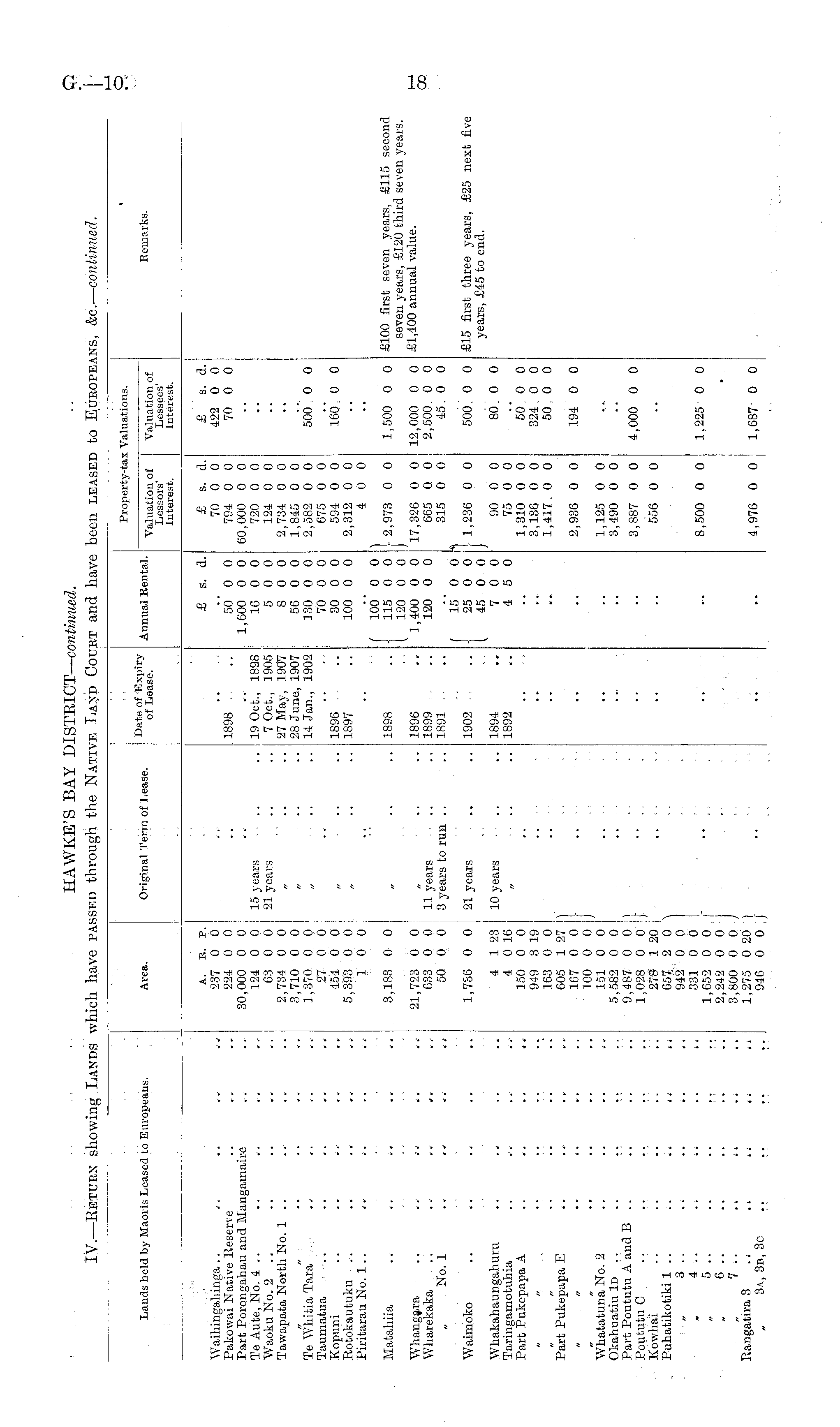 HAWKE'S BAY DISTRICT— continued. IV.—Return showing Lands which have passed through the Native Land Court and have been leased to Europeans, &c.— continued.