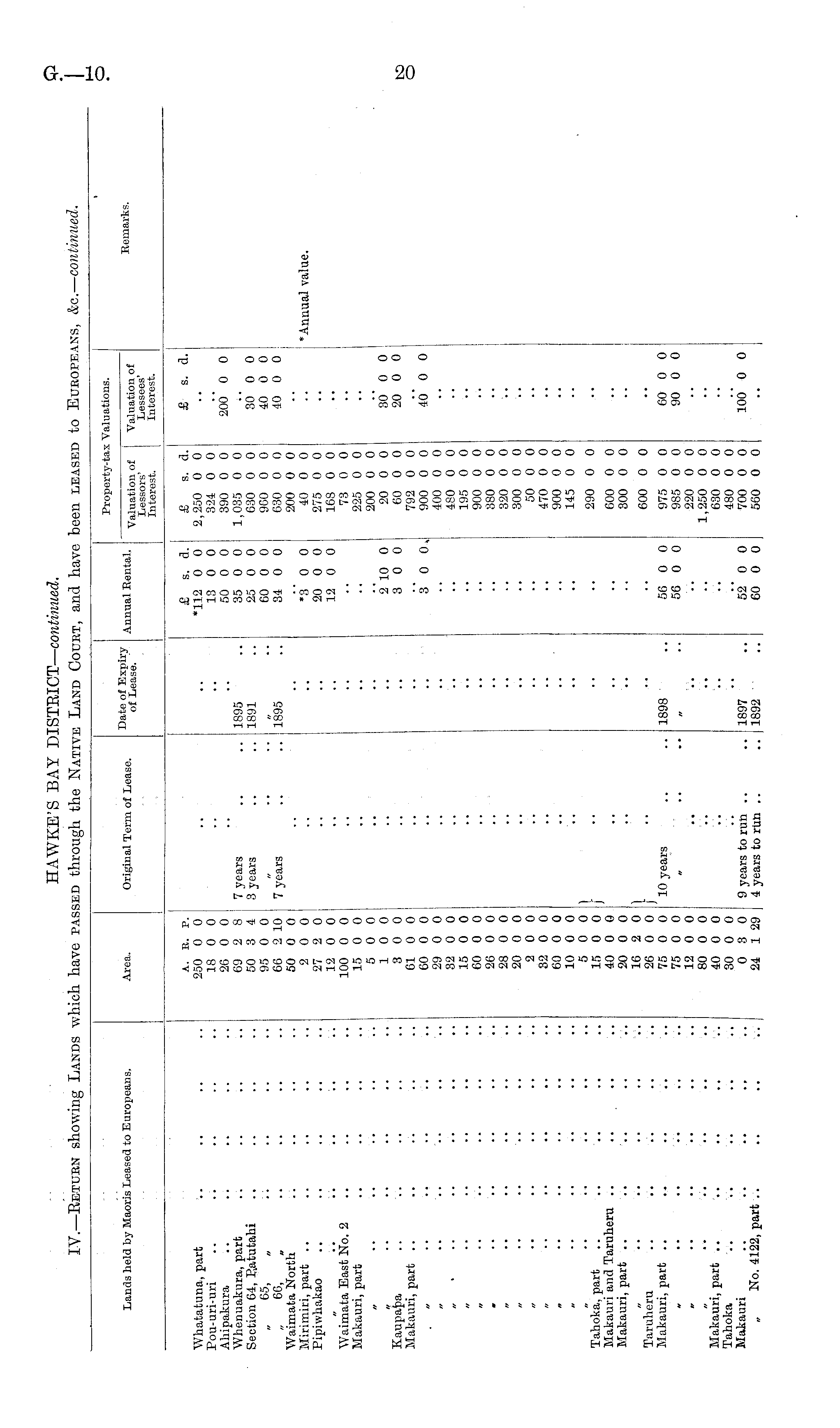 HAWKE'S BAY DISTRICT— continued. IV.—Return showing Lands which have passed through the Native Land Court, and have been leased to Europeans, &c.— continued.
