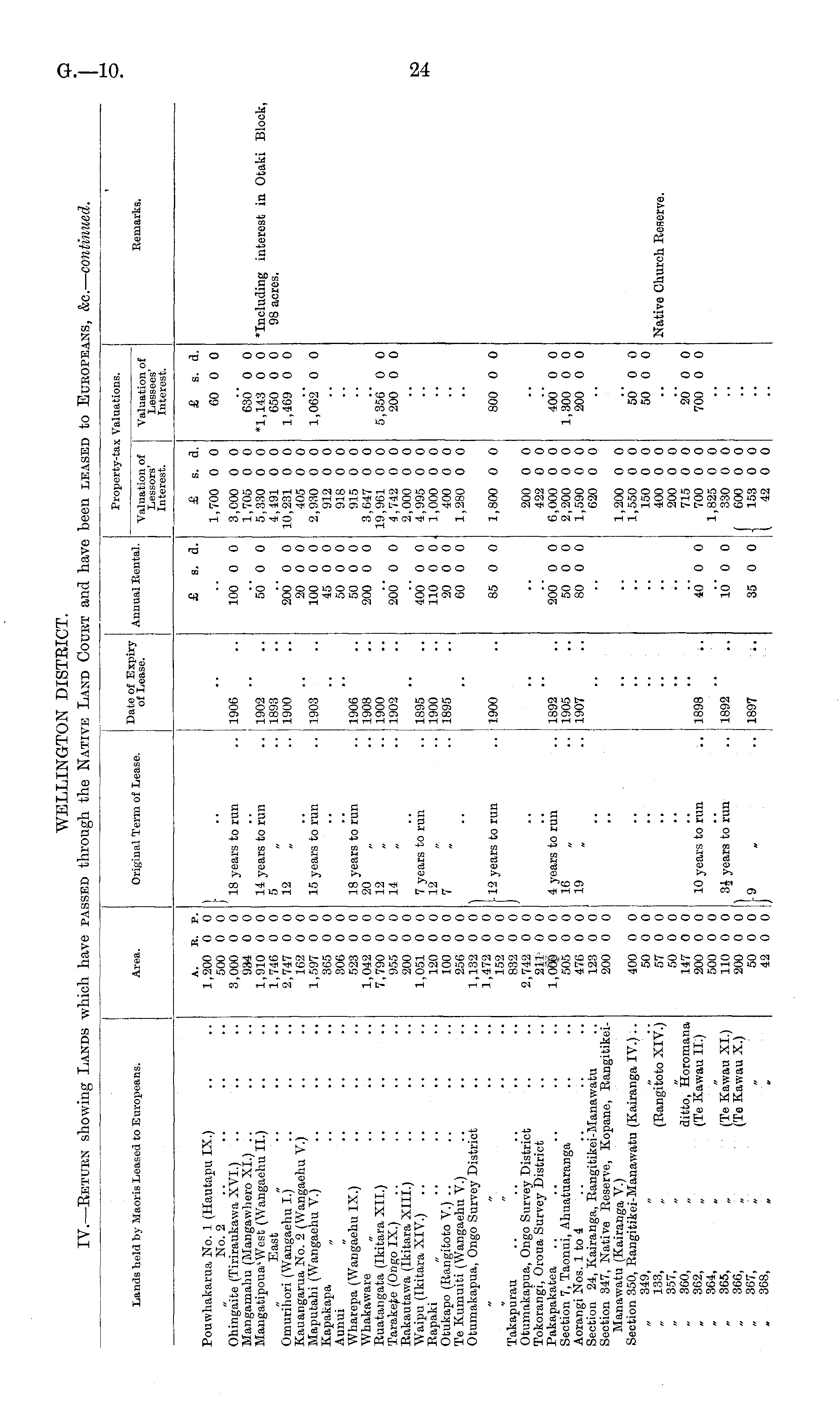 WELLINGTON DISTRICT. IV.—Return showing Lands which have passed through the Native Land Court and have been leased to Europeans, &c.— continued.