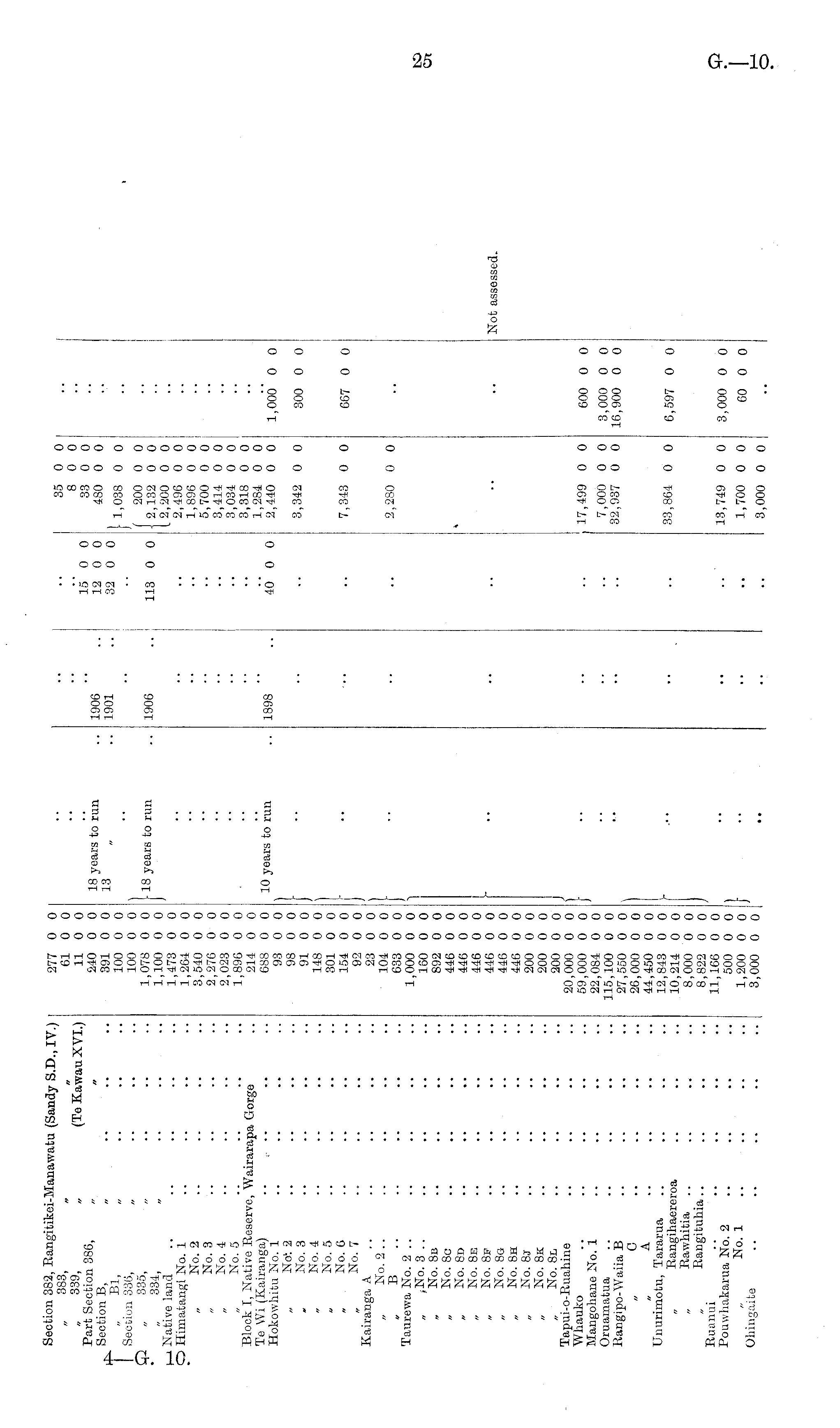 Section 382, Bangitikei-Manawatu (Sandy S.D., IV.) 339, „ (TeKawauXVI.) Part Section 386, Section B, „ Bl, .. \\ \\ Section 336, „ 335, 334, „ .. .. \\ Native land Himatangi No. 1 No. 2 No. 3 No. 4 No. 5 Block I, Native Reserve, Wairarapa Gorge Te Wi (Kairanga) .. Hokowhitu No. 1 No'. 2 No. 3 No. 4 No. 5 No. 6 .. .. .. \\ * No. 7 Kairanga A No. 2 .. B .. .. .. .. " Taurewa No. 2 .. » .No. 3 .. No. 8b No. 8c No. 8d .. .. " No. 8b .. .. .. .. No. 8f „ No. 8a .. .. .. " No. 8h No. 8j No. 8k .. No. 8t, .. .. .. \\ Tapui-o-Ruahine Wliauko Mangohane No. 1 Oruamatua Rangipo-Waiia B A Unurimotu, Tararua „ Rangihaereroa „ Rawliitia Rangituhia .. Ruanui Pouvviiakarua No. 2 No. 1 .. .. .. . | Ohiugaibe 277 0 0 61 0 0 11 0 0 240 0 0 391 0 0 100 0 0 100 0 0 1,078 0 0 1,100 0 0 1,473 0 0 1,264 0 0 3,540 0 0 2,270 0 0 2,023 0 0 1,896 0 0 214 0 0 688 0 0 93 0 0 98 0 0 91 0 0 148 0 0 301 0 0 154 0 0 92 0 0 23 0 0 104 0 0 633 0 0 1,000 0 0 160 0 0 892 0 0 446 0 0 446 0 0 446 0 0 446 0 0 446 0 0 446 0 0 200 0 0 200 0 0 200 0 0 20,000 0 0 59,000 0 0 22,084 0 0 115,100 0 0 27,550 0 0 26,000 0 0 44,450 0 0 12,843 0 0 10,214 0 0 8,000 0 0 8,822 0 0 11,166 0 0 500 0 0 1,200 0 0 3,000 0 0 18 years to run 13 [ 18 years to run 10 years to run I \ I I ! - 1906 1901 1906 1898 15 0 0 12 0 0 32 0 0 113 0 0 40 0 0 35 0 0 8 0 0 33 0 0 480 0 0 | 1,038 0 0 f 200 0 0 \ 2,132 0 0 12,200 0 0 2,496 0 0 1,896 0 0 5,700 0 0 3,414 0 0 3,034 0 0 3,318 0 0 1,284 0 0 2,440 0 0 3,342 0 0 7,343 0 0 2,230 0 0 1,000 0 0 300 0 0 G6T 0 0 r i Not assessed. J 17,499 0 0 600 0 0 )■ 7,000 0 0 32,937 0 0 3,000 0 0 16,900 0 0 33,864 0 0 6,597 0 0 ) 13,749 0 0 3,000 0 0 I 1,700 0 0 60 0 0 3,000 0 0