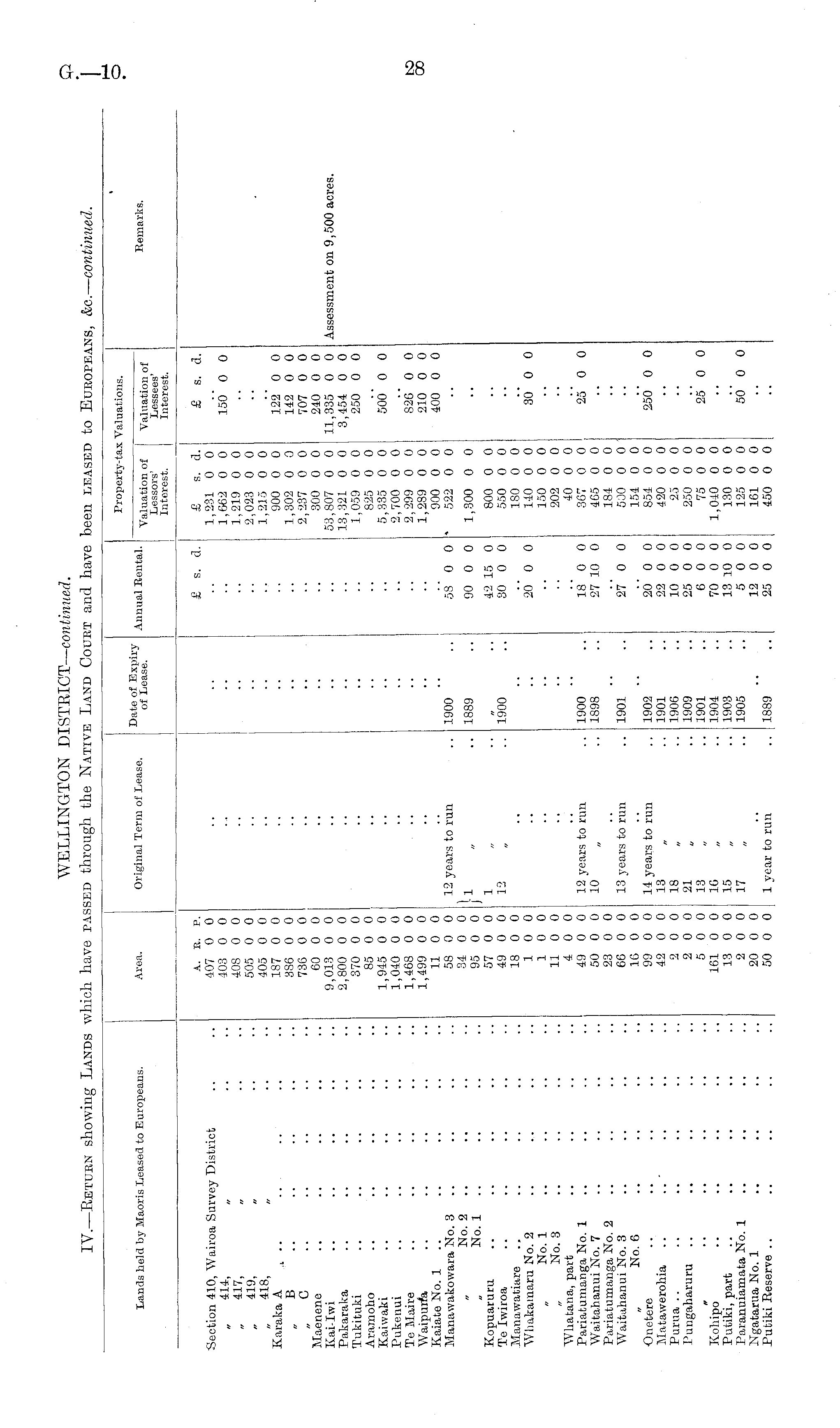 WELLINGTON DISTRICT. IV.—Return showing Lands which have passed through the Native Land Court and have been leased to Europeans, &c.— continued.