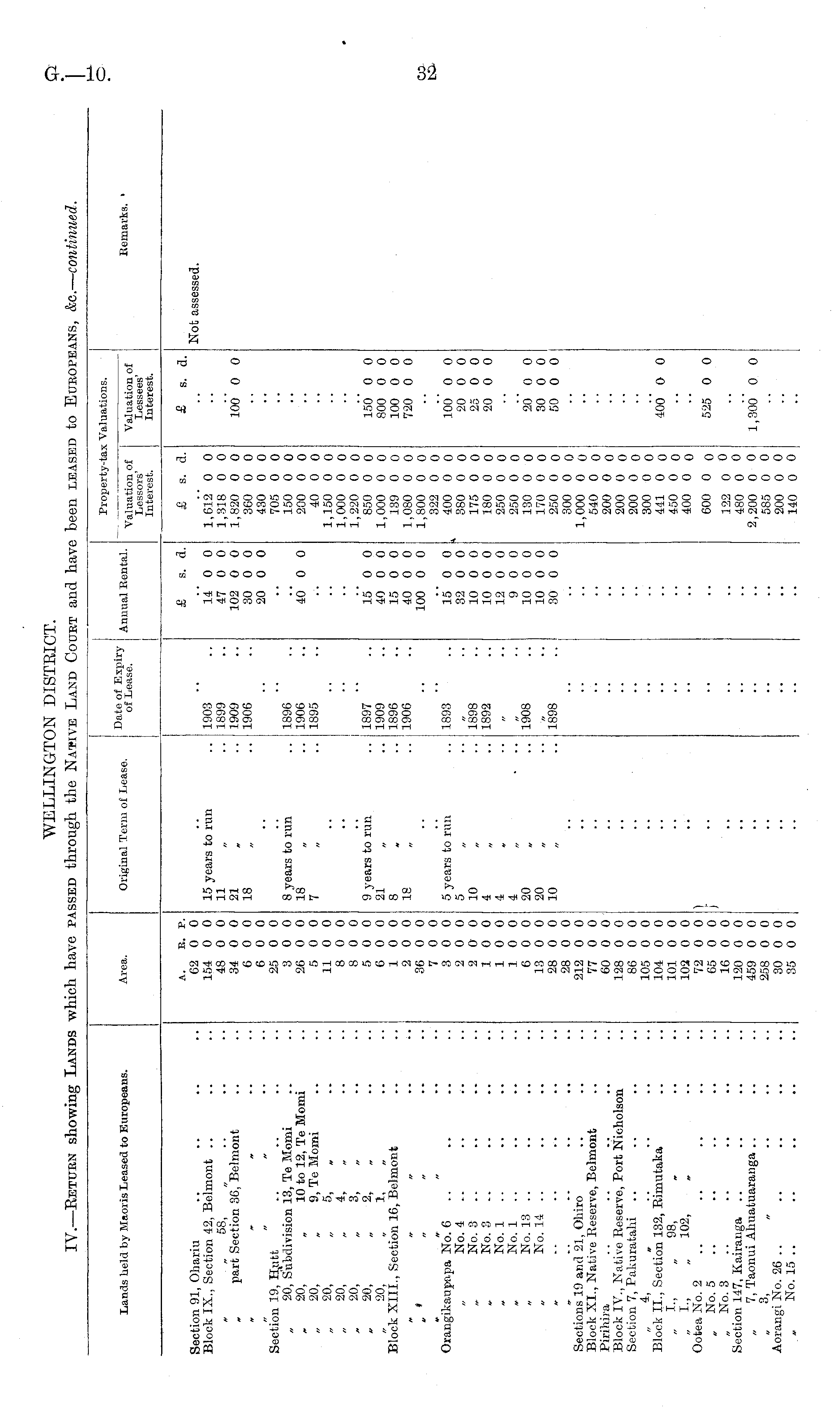 WELLINGTON DISTRICT. IV.—Return showing Lands which have passed through the Native Land Court and have been leased to Europeans, &c.— continued.