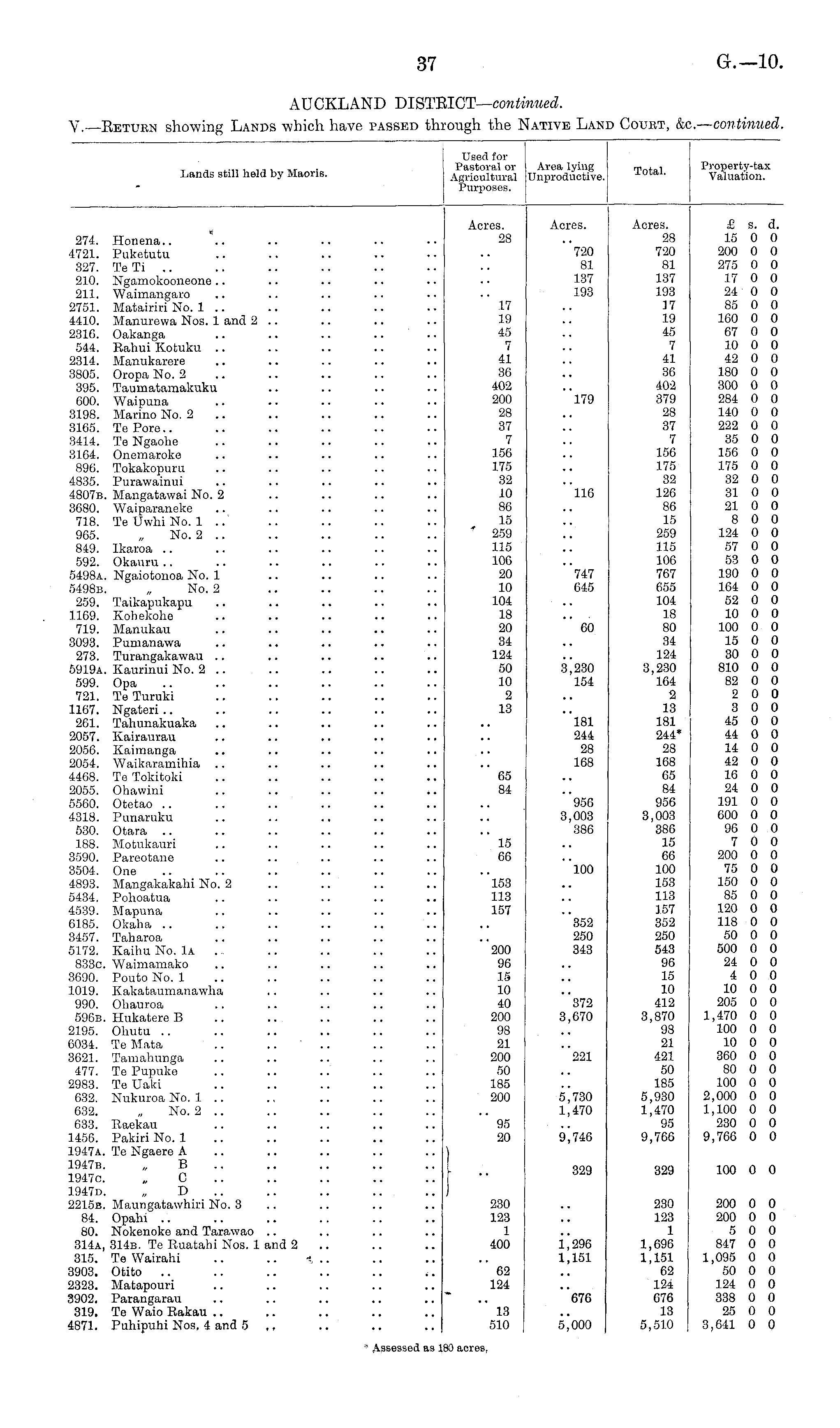 AUCKLAND DISTRICT-continued. V.—Return showing Lands which have passed through the Native Land Court, &c.— continued.