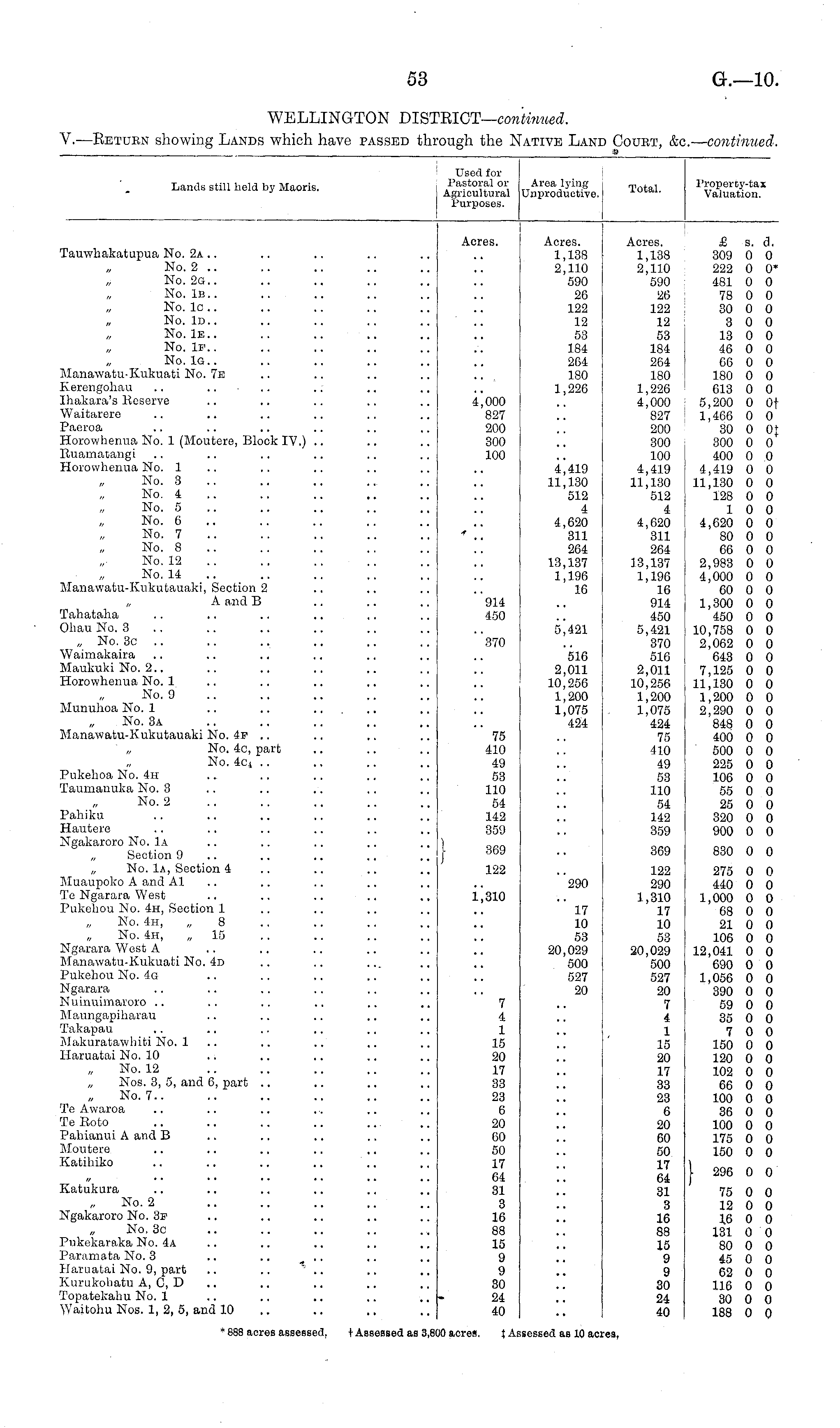 WELLINGTON DISTRICT—continued. V.—Return showing Lands which have passed through the Native Land Court, &c.— continued.