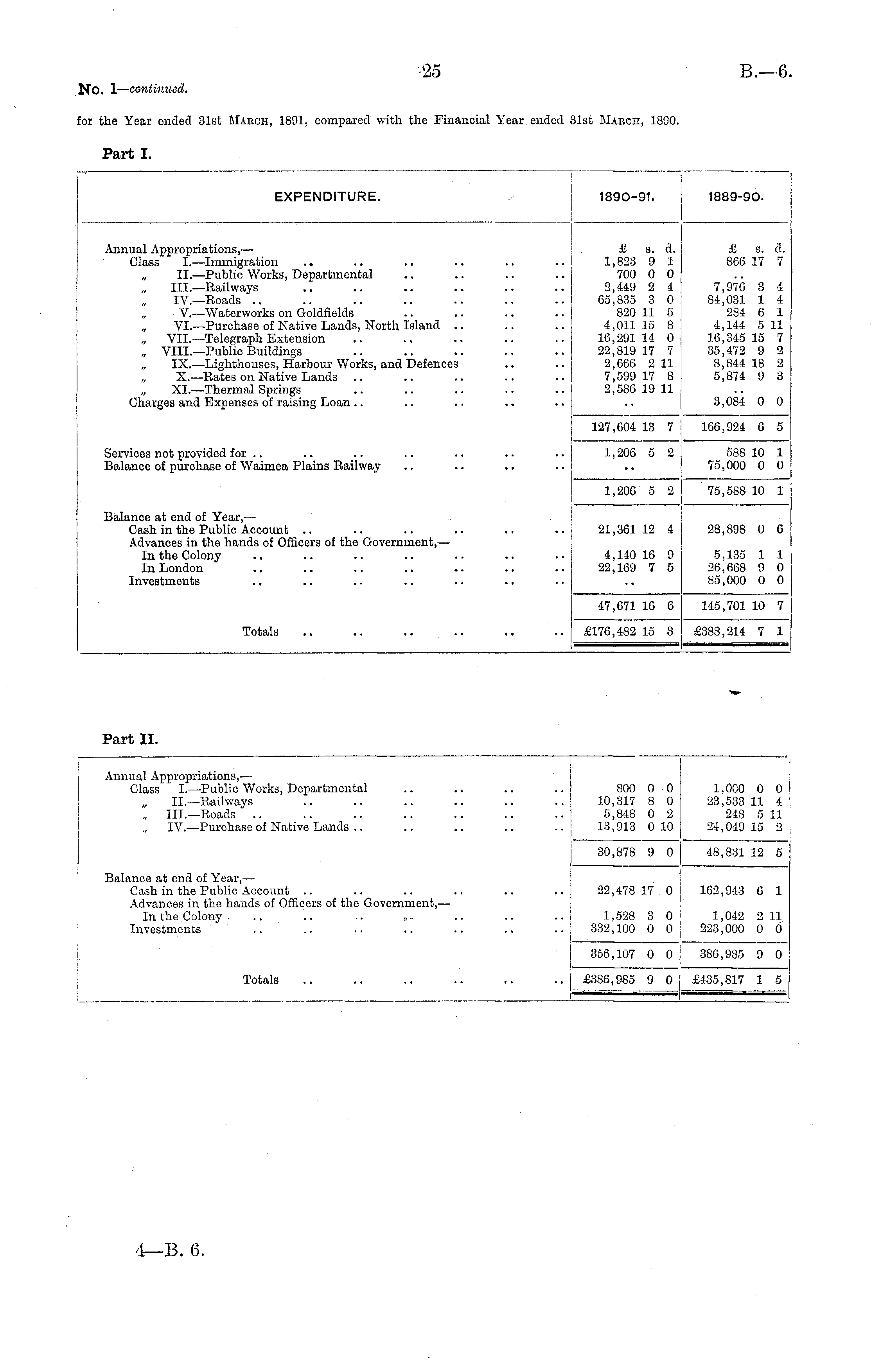 for the Year ended 31st March, 1891, compared with the Financial Year ended 31st March, 1890. Part I.