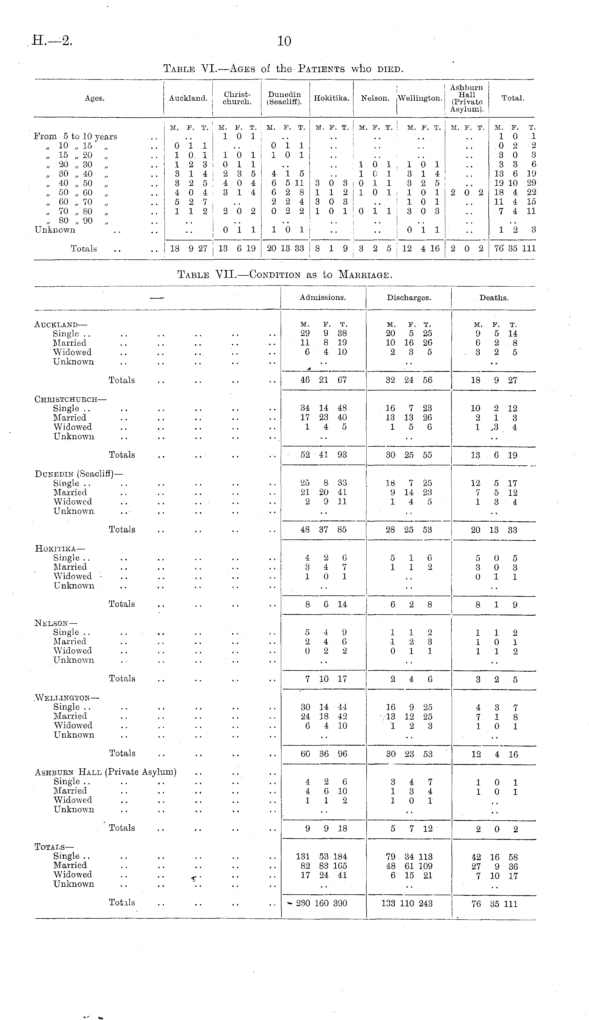 Ages. \fi__-\___ ; Christ- Duuedin Auckland. | church (Seacliff). Hokitika. Ashburn Nelson. Wellington: XXAsylum). Total. SI. P. T. SI. F. T, ,10 1 oil! 10 110 1 12 3 0 11 3 14 2 3 5 3 2 5 4 0 4 4 0 4 3 14 5 2 7 112 2 0 2 si. F. T. St. F. T. ' M. F. T. SI. P. T. SI. F. T. SI. P. T. 1 0 1 0 2 2 3 0 3 3 3 6 13 6 19 19 10 29 18 4 22 11 4 15 7 4 11 ?rom 5 to 10 years „ 10 „ 15 „ „ 15 „ 20 „ „ 20 „ 30 „ „ 30 „ 40 „ „ 40 „ 50 „ „ 50 „ 60 „ „ 60 „ 70 „ „ 70 „ 80 „ „ 80 „ 90 „ Unknown Oil 10 1 4 15 6 5 11 6 2 8 2 2 4 0 2 2 10 1 10 1 1 0 1 3 14 3 0 3)011 325 112101101 3 0 3 .. 10 1 101011 303 .. 2 0 2 '.'. oil 18 9 27 I 13 6 19 10 1 '.. '.'. oil 12 3 Totals 20 13 33 8 1 9 3 2 5 12 4 16 I 2 0 2 76 35 111