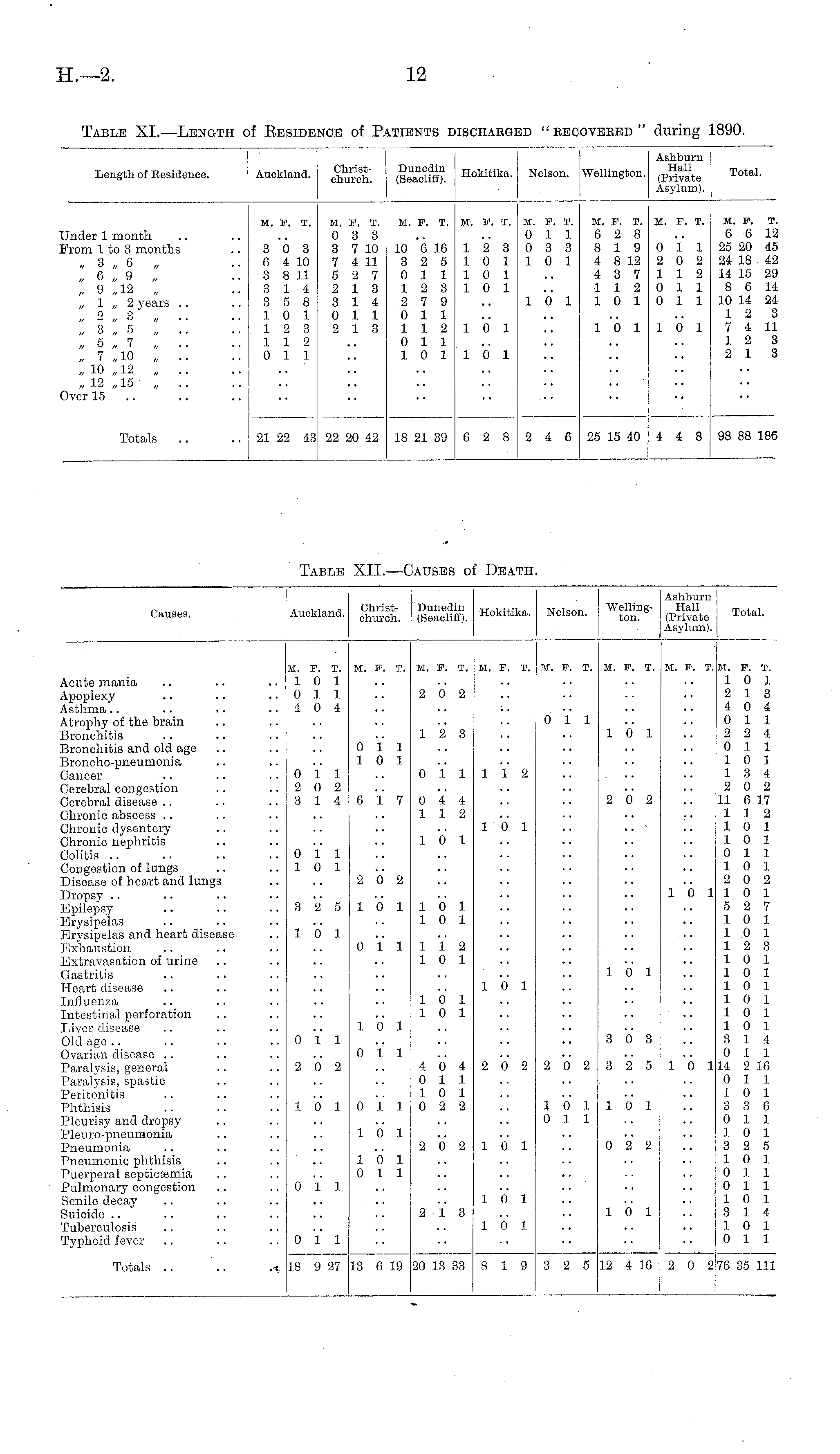 Table XI.—Length of Residence of Patients discharged "recovered" during 1890.