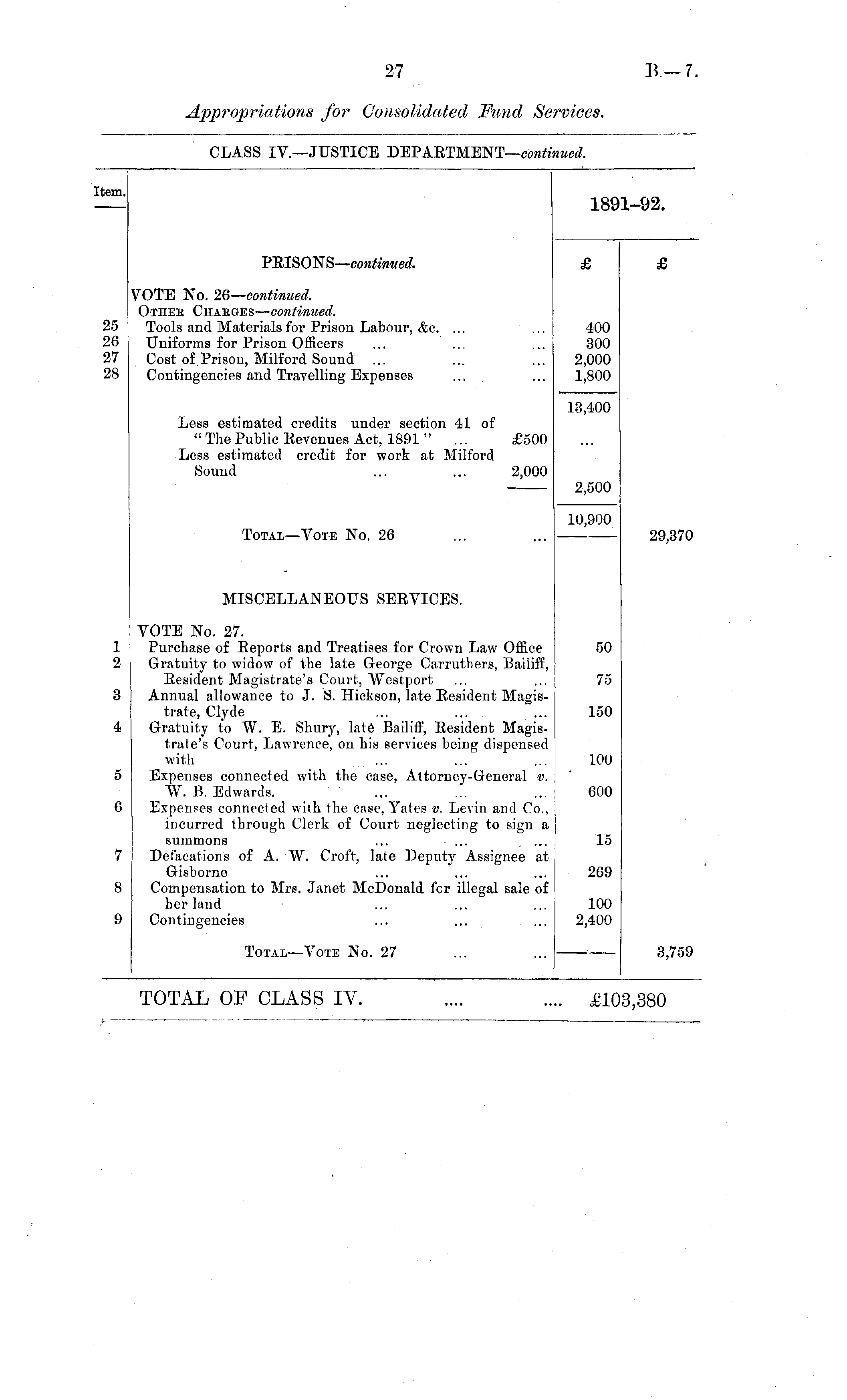 CLASS IV.—JUSTICE DEPARTMENT— continued.
