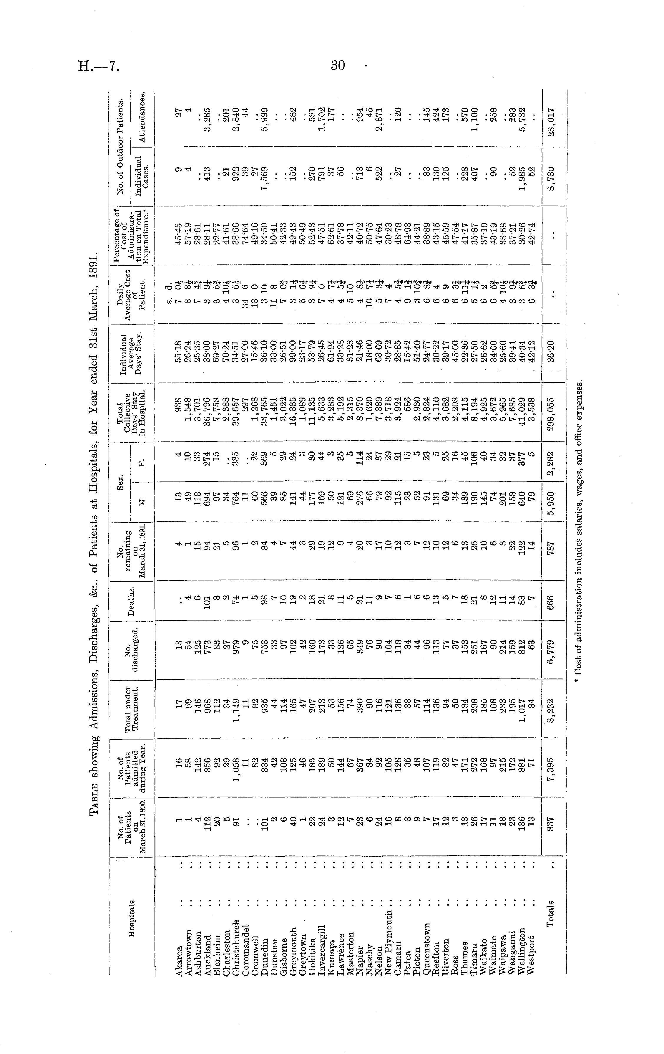 Hospitals. No. ot Patients on March 31,1800. No. oi Patients admitted during Year. Total under No. Treatment. discharged. Deaths. No. remaining on March 31,1891. S« !X. Total Collective Days' Stay F. in Hospital. no ,i,- Percentage of I Individual . m "5 . Cost of Average Average Cost Administra . _ Days' Stay. „ ( , t tion on Total 1 atient. Bxpon aiture.* No. of Outdi Individual Cases. ■or Patients. M. Individual Cases. Attendanci Akaroa Arrow-town Ashburton Auckland Blenheim Charleston Christchurch Coromandel Cromwell Dunediu Dunstan Gisborne Greymouth Greytown Hokitika Invercargill Kumar,a Lawrence Masterton Napier Naseby Nelson New Plymouth .. Oamaru Patea Picton Queenstown Reefton Eiverton Ross Thames Timaru Waikato Waimate Waipawa Wanganui Wellington Westport 1 1 4 112 20 5 91 161 2 6 40 1 22 24 3 12 7 23 6 24 16 8 3 9 7 17 12 3 13 26 17 11 18 23 136 13 36 58 142 856 92 29 1,058 11 82 834 42 108 125 46 185 189 50 144 67 367 84 92 105 128 35 48 107 119 82 47 171 272 168 97 215 172 881 71 17 59 146 968 112 34 1,149 11 82 935 44 114 165 47 207 213 53 156 74 390 90 116 121 136 38 57 114 136 94 50 184 298 185 108 233 195 1,017 84 13 54 125 773 83 27 979 9 75 753 33 97 102 42 160 173 33 136 65 349 76 90 104 118 34 44 96 113 77 37 153 251 167 90 214 159 812 63 4 6 101 8 2 74 1 5 98 7 10 19 2 18 21 8 11 5 21 11 9 7 6 1 6 6 13 5 7 18 21 8 12 11 14 83 7 4 1 15 94 21 5 96 1 2 84 4 7 44 3 29 19 12 9 4 20 3 17 10 12 3 7 12 10 12 6 13 26 10 6 8 22 122 14 13 49 113 694 97 34 764 11 60 566 39 85 141 44 177 169 50 121 69 276 66 79 92 115 23 52 91 131 69 34 139 190 145 74 201 158 640 79 4 10 33 274 15 385 22 369 5 29 24 3 30 44 3 35 5 114 24 37 29 21 15 5 23 5 25 16 45 108 40 34 32 37 377 5 938 1,548 3,701 36,796 7,758 2,388 39,657 297 1,268 33,765 1,451 3,022 16,335 1,089 11,135 5,633 3,283 5,192 2,315 8,370 1,620 7,389 3,718 3,924 586 2,930 2,824 4,110 3,682 2,208 4,115 8,194 4,925 3,672 5,965 7,685 41,029 3,538 55-18 26-24 25-35 38-00 69-27 70-24 34-51 27-00 15-46 36-10 33-00 26-51 99-00 23-17 53-79 26-45 61-94 33-28 31-28 21-46 18-00 63-69 30-72 28-85 15-42 51-40 24-77 30-22 39-17 45-00 22-30 27-50 26-62 34-00 2560 39-41 40-34 42-12 s. a. 7 OJ 8 8J 7 4} 3 9J 3 5| 4 104 3 5| 34 6" 13 0 3 10 11 8 7 0J 3 1J 5 6J 3 9J 7 0 4 71 4 5| 5 10 4 8J 10 74 5 3J 7 4 4 5| 9 1$ 3 10J 6 8| 6 4 6 9 6 8J 6 llj 5 14 6 2 6 5f 4 104 3 9| 3 6} 6 3| 45-45 57-19 28-61 28-11 22-77 41-01 38-66 74'64 49-16 34-50 50-41 42-33 49-43 50-49 52-43 47-51 62-61 37-78 42-11 40-72 50-75 47-64 30-23 48-78 64-93 44-21 38-89 43-15 45-59 47-54 41-17 35-87 3710 43-19 38-68 37-21 30-26 42-74 9 4 413 21 922 39 27 1,569 •• 152 270 791 37 56 713 6 522 27 4 3,285 201 2,840 44 5,999 •• 482 581 1,702 177 954 45 2,871 27 120 83 130 125 145 424 173 228 407 570 1,100 90 258 52 1,985 52 283 5,732 Totals 837 7,395 8,232 6,779 666 298,055 36-20 8.73U I ! 28,017 787 5,950 2,282 •• * Cost of administration includes salaries, wages, and office expenses.