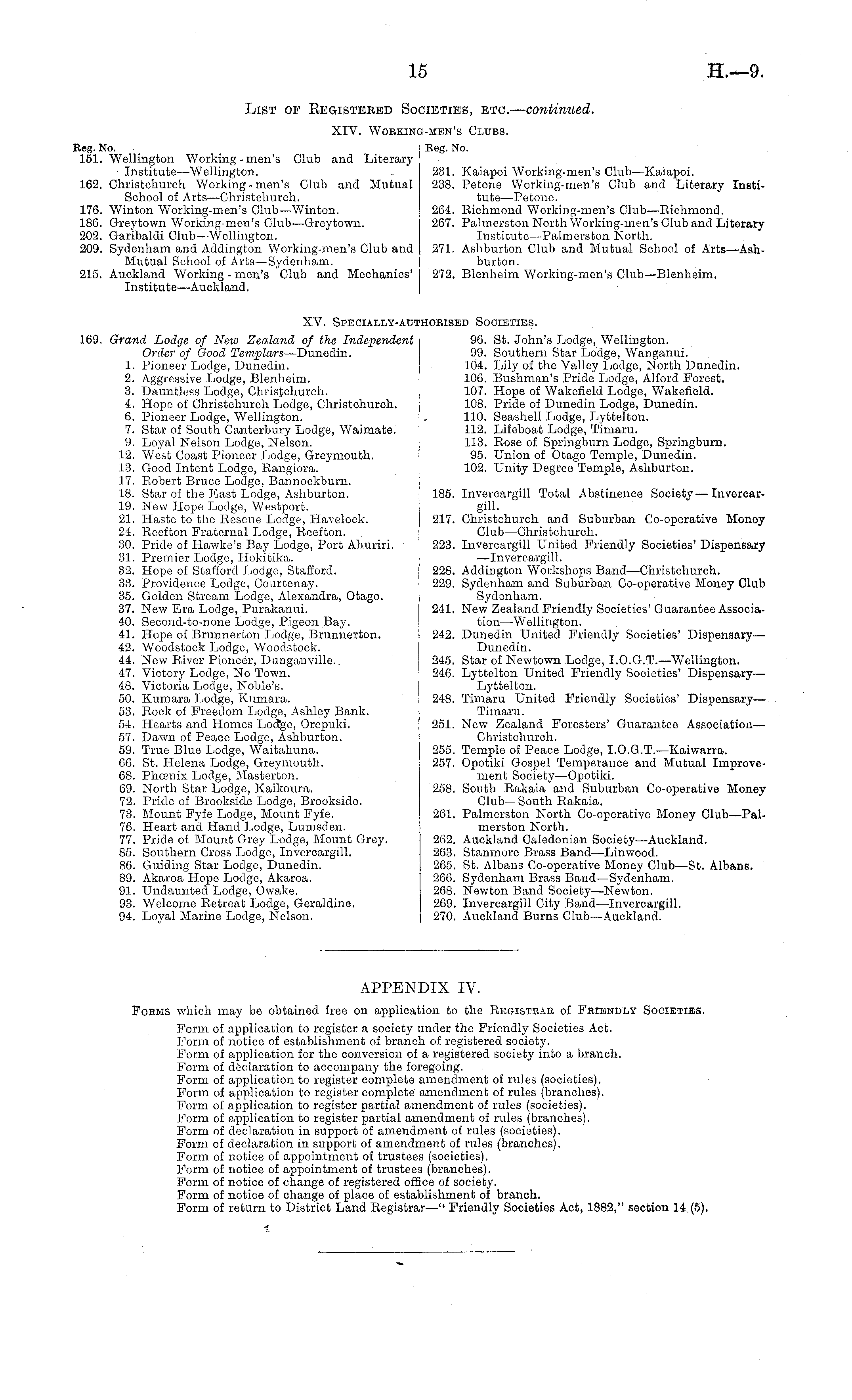 APPENDIX IV. Poems which may be obtained free on application to the Registrar of Feiendly Societies. Form of application to register a society under the Friendly Societies Act. Form of notice of establishment of branch of registered society. Form of application for the conversion of a registered society into a branch. Form of declaration to accompany the foregoing. Form of application to register complete amendment of rules (societies). Form of application to register complete amendment of rules (branches). Form of application to register partial amendment of rules (societies). Form of application to register partial amendment of rules (branches). Form of declaration in support of amendment of rules (societies). Form of declaration in support of amendment of rules (branches). Form of notice of appointment of trustees (societies). Form of notice of appointment of trustees (branches). Form of notice of change of registered office of society. Form of notice of change of place of establishment of branch. Form of return to District Land Begistrar—" Friendly Societies Act, 1882," section 14 (5).