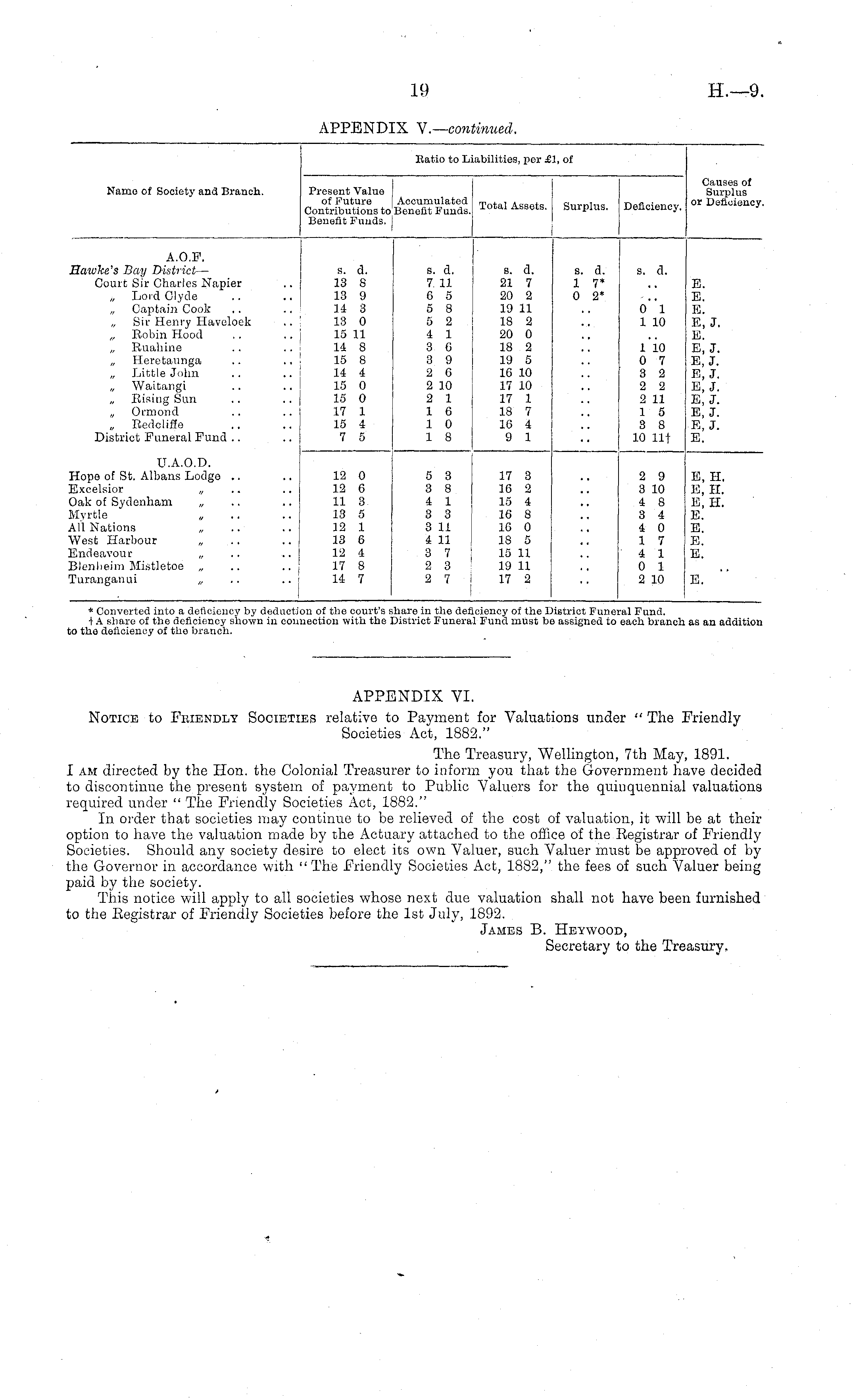 Name of Society and Branch. Batio to Li Present Value of Future Accumulated Contributions to Beneiit Funds. Benefit Funds. | llatio to [abilities, per £1, of I Total Assets. Surplus. Deficiency. ! I Causes of Surplus or Deficiency. I A.O.P. Hawke's Bay District — Court Sir Charles Napier „ Lord Clyde „ Captain Cook „ Sir Henry Haveloek „ Eobin Hood „ Ruahine „ Heretaunga „ Little John „ Waitangi Eising Sun „ Ormond „ Redclifie District Funeral Fund .. s. a. 13 8 13 9 14 3 13 0 15 11 14 8 15 8 14 4 15 0 15 0 17 1 15 4 7 5 s. d. 7 11 6 5 5 8 5 2 4 1 3 6 3 9 2 6 2 10 2 1 1 6 1 0 1 8 s. a. 21 7 20 2 19 11 18 2 20 0 18 2 19 5 16 10 17 10 17 1 18 7 16 4 9 1 s. d. 1 7* 0 2* s. a. o"i 1 10 1 10 0 7 3 2 2 2 2 11 1 5 3 8 10 lit E. E. E. E,J, E. E, 3. E, 3. E,J. E, J. E, 3. E, J. E, 3. E. U.A.O.D. Hope of St. Albans Lodge .. Excelsior „ Oak of Sydenham „ Myrtle All Nations „ West Harbour Endeavour „ Blenheim Mistletoe „ Turanganui „ 12 0 12 6 11 3 13 5 12 1 13 6 12 4 17 8 14 7 5 3 3 8 1 1 3 3 3 11 4 11 3 7 2 3 2 7 17 3 16 2 15 4 16 8 16 0 18 5 15 11 19 11 17 2 2 9 3 10 4 8 3 4 4 0 1 7 4 1 0 1 2 10 E, H. B, H. E, H. E. E. E. E. E. * Converted into a deficiency by deduction of the court's + A share of the deficiency shown in connection with the ;o the deficiency of tho branch. share in the de; District Funeri ieiency of the L .1 Fund must bi listrict Funeral Fund. 3 assigned to each branch as an addition