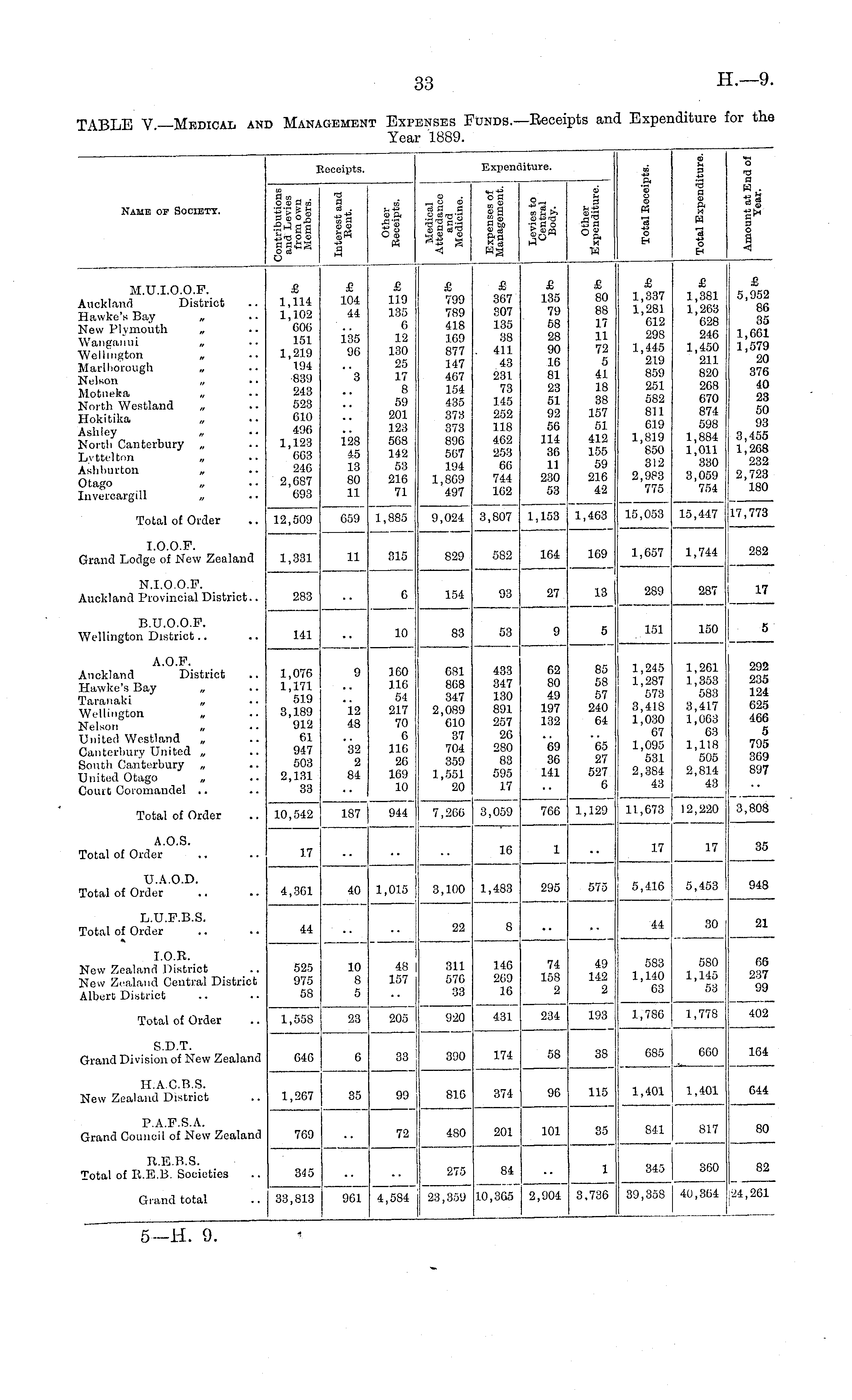 TABLE V.—Medical and Management Expenses Funds.—Receipts and Expenditure for the Year 1889.