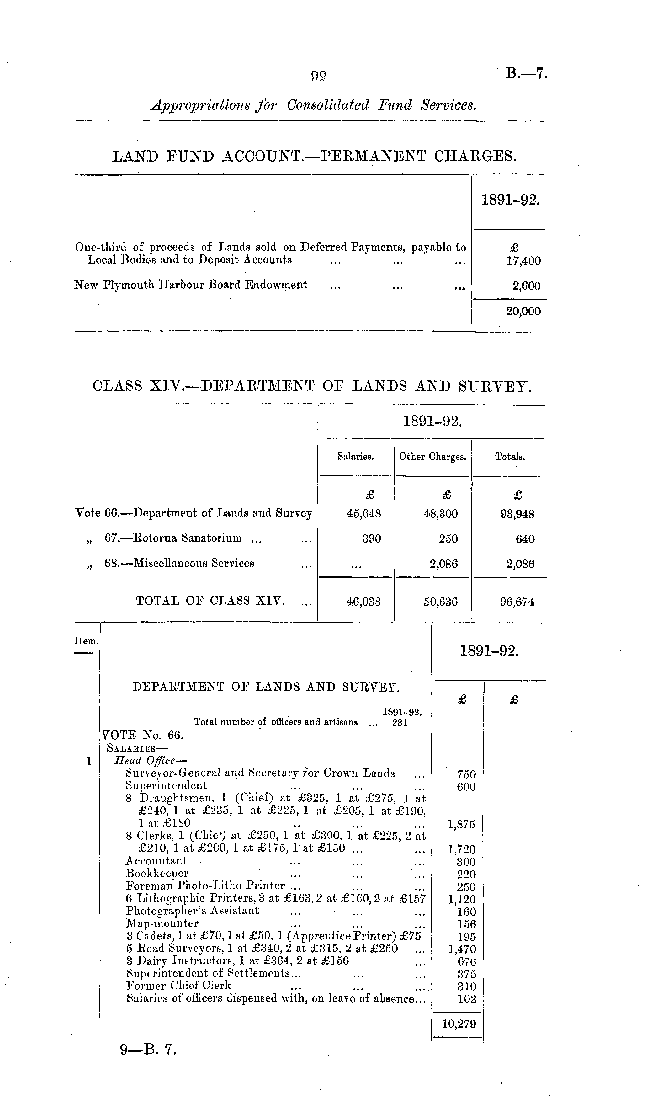 CLASS XIV.—DEPARTMENT OF LANDS AND SURVEY.