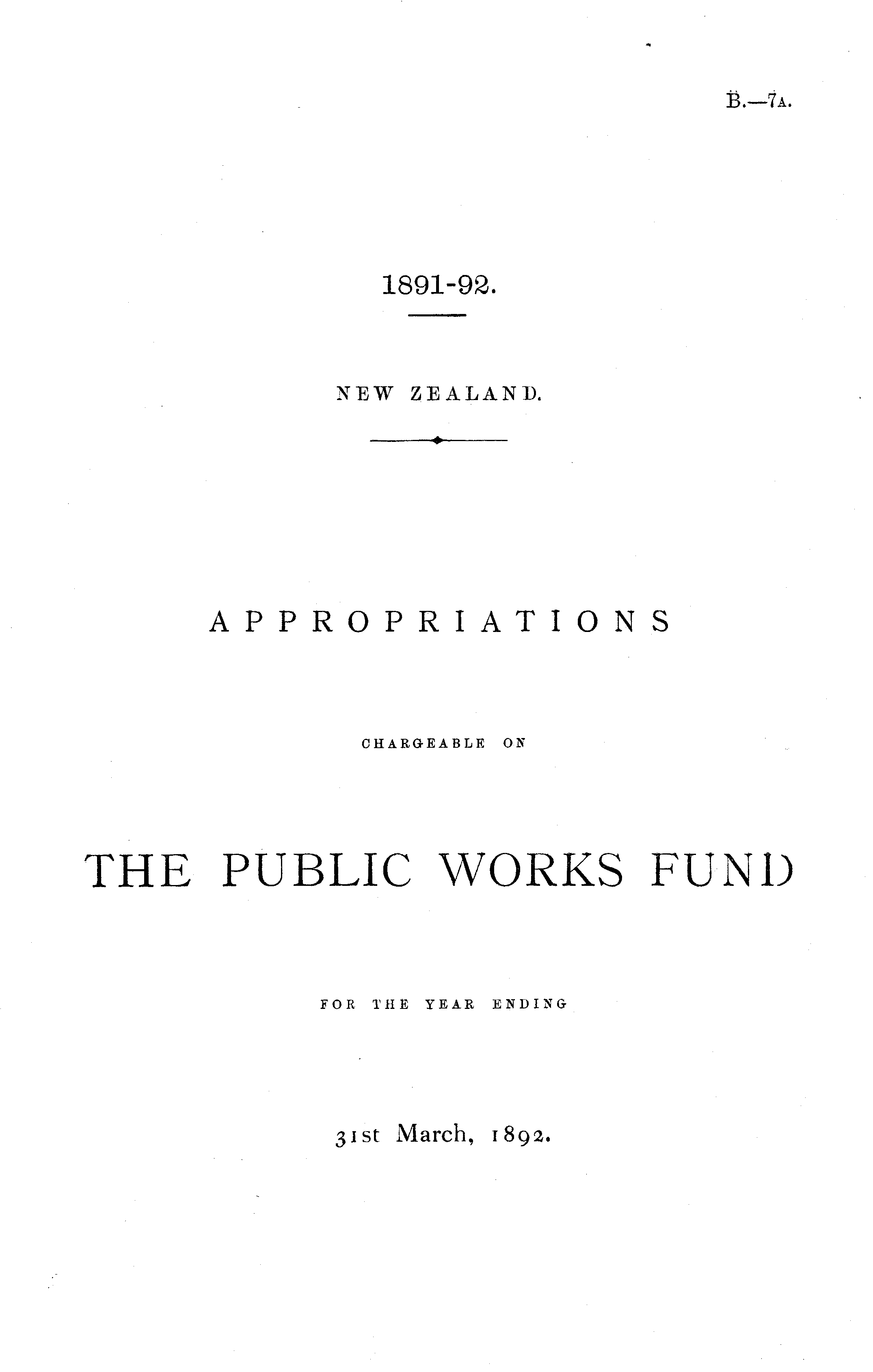 APPROPRIATIONS CHARGEABLE ON THE PUBLIC WORKS FUND FOR THE YEAR ENDING 31st March, 1892.