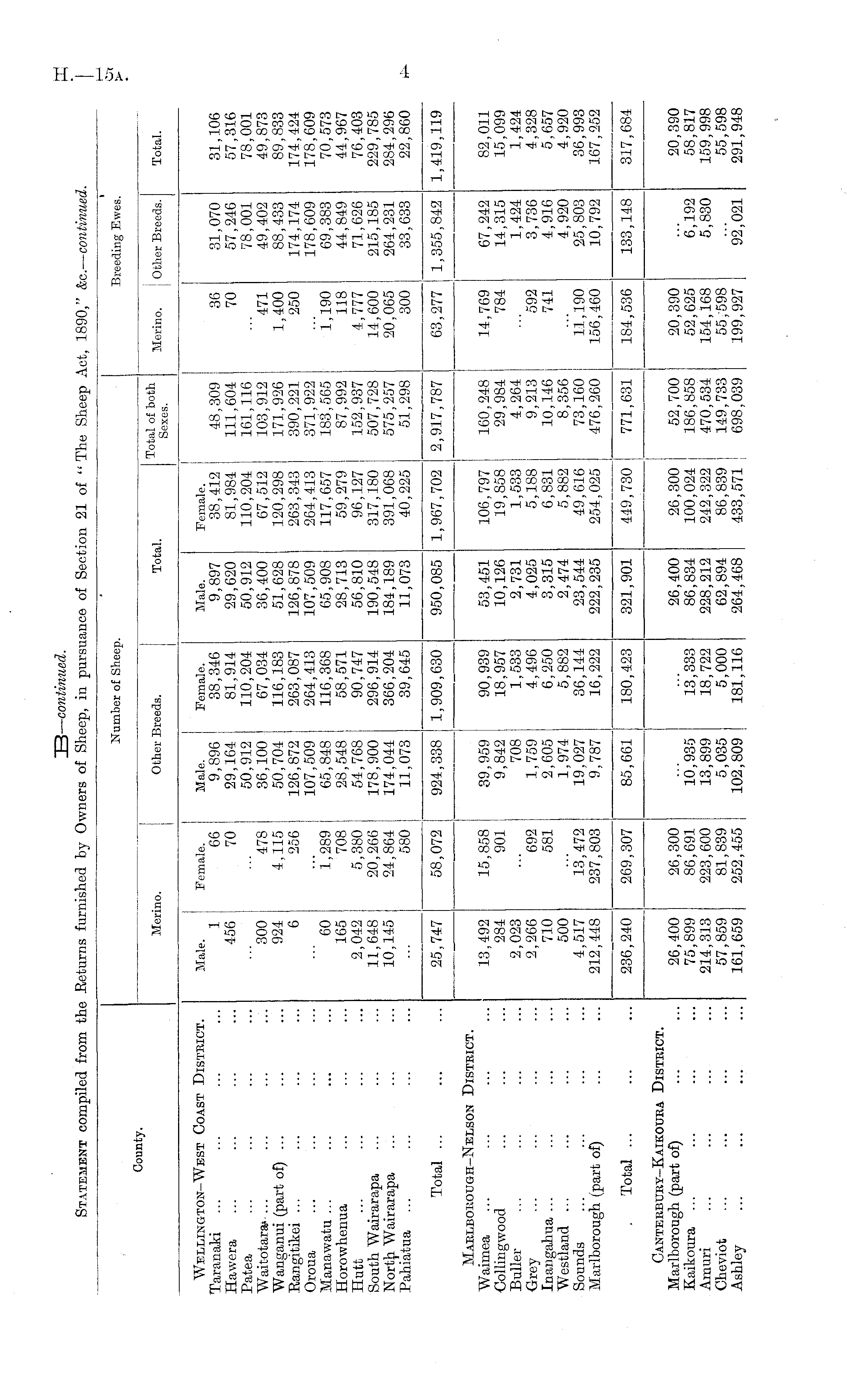 B-continued. Statement compiled from the Returns furnished by Owners of Sheep, in pursuance of Section 21 of "The Sheep Act, 1890," &c.— continued.