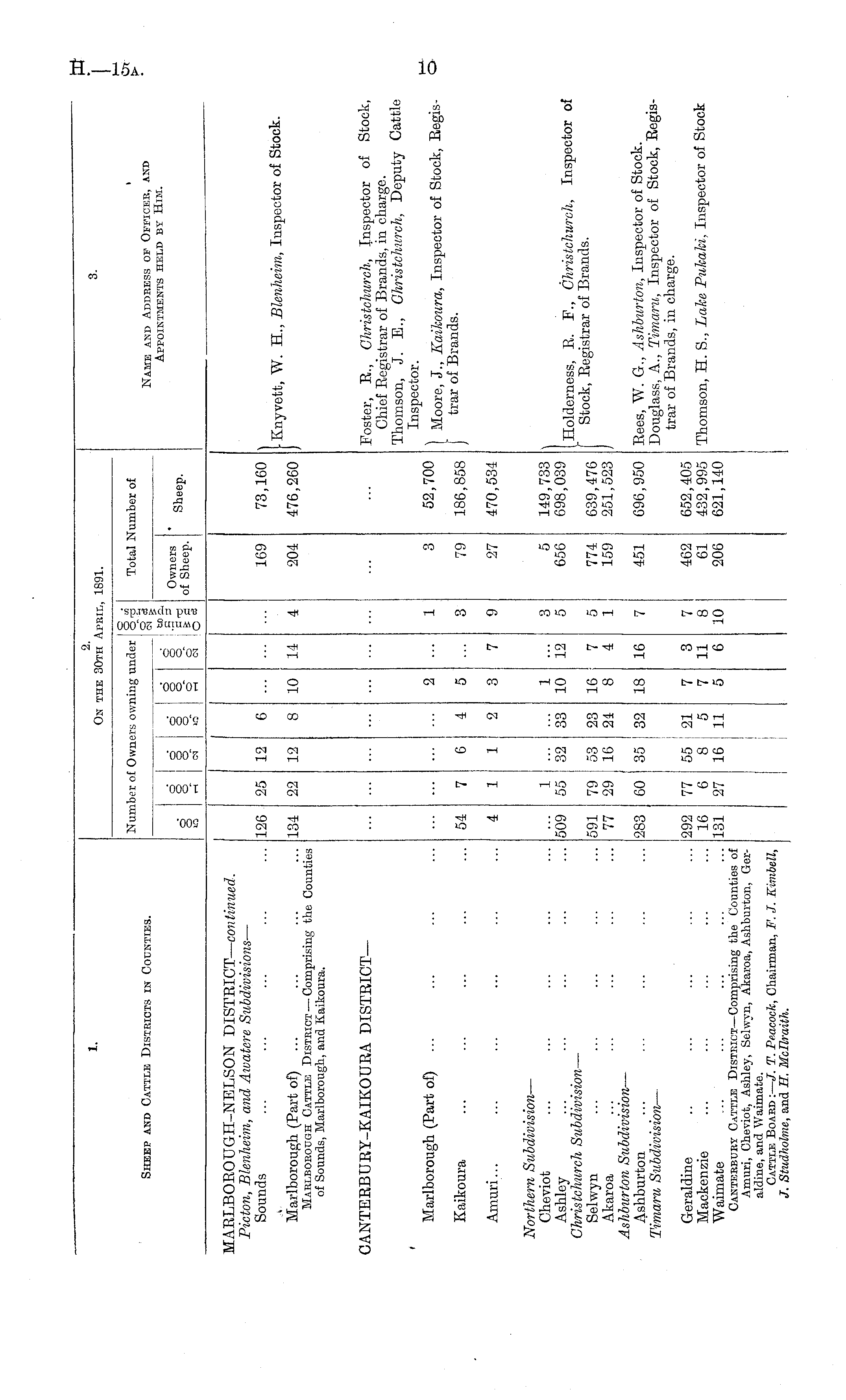 l. 2. On the 30th Apbil, 1891. 3. Sheep and Cattle Distbicts in Counties. O DO S 3 <5S i Number of Owners owning under Total Number of Name and Addbess of Offices, and Appointments held by Him. | o o T-l of o 6 c" o Owners of Sheep. Sheep. dAELBOEOUGH-NELSON DISTBICT— continued. Picton, Blenheim, and Aivatere Subdivisions — Sounds 126 25 12 6 169 73,160 [Knyvett, W. H., Blenheim, Inspector of Stock. Marlborough (Part of) Maelbobough Cattle Distbiot — Comprising the Counties of Sounds, Marlborougli, and Kaikoura. 134 22 12 8 10 14 4 204 476,260 JANTEEBUEY-KAIKOUBA DISTEICT— Foster, E., Ghristchurch, Inspector of Stock, Chief Eegistrar of Brands, in charge. Thomson, J. E., Ghristchurch, Deputy Cattle Inspector. i 3 52,700 Marlborough (Part of) ... 2 1 | Moore, J., Kaikoura, Inspector of Stock, Eegisj trar of Brands. Kaikoura 54 7 6 4 5 3 79 186,858 Amuri ... 4 1 1 2 3 7 9 27 470,534 Northern Subdivision — Cheviot Ashley Chris tchurch Subdivision — Selwyn Akaroa Ashburton Subdivision — Ashburton Tirnaru Subdivision — 509 1 55 32 33 1 10 12 3 5 5 656 149,733 698,039 [Holderness, E. F., Ghristchurch, Inspector of [ Stock, Eegistrar of Brands. 591 77 79 29 53 16 23 24 16 8 7 4 5 1 774 159 639,476 251,523 283 60 35 32 13 16 7 451 696,950 Eees, W. C, Ashburton, Inspector of Stock. Douglass, A., Timaru, Inspector of Stock, Eegistrar of Brands, in charge. Geraldine Mackenzie Waimate Canterbuby Cattle Distiuct —Comprising the Counties of Arnuri, Cheviot, Ashley, Selwyn, Akaroa, Ashburton, Geraldine, and Waimate. Cattle Board :— J. T. Peacock, Chairman, F. J. Eimbell, J. Studholme, and H. Mcllraitli. 292 16 131 77 6 27 55 16 21 11 7 7 5 3 11 6 7 8 10 462 61 206 652,405 432,995 621,140 Thomson, H. S., Lake Puhaki, Inspector of Stock