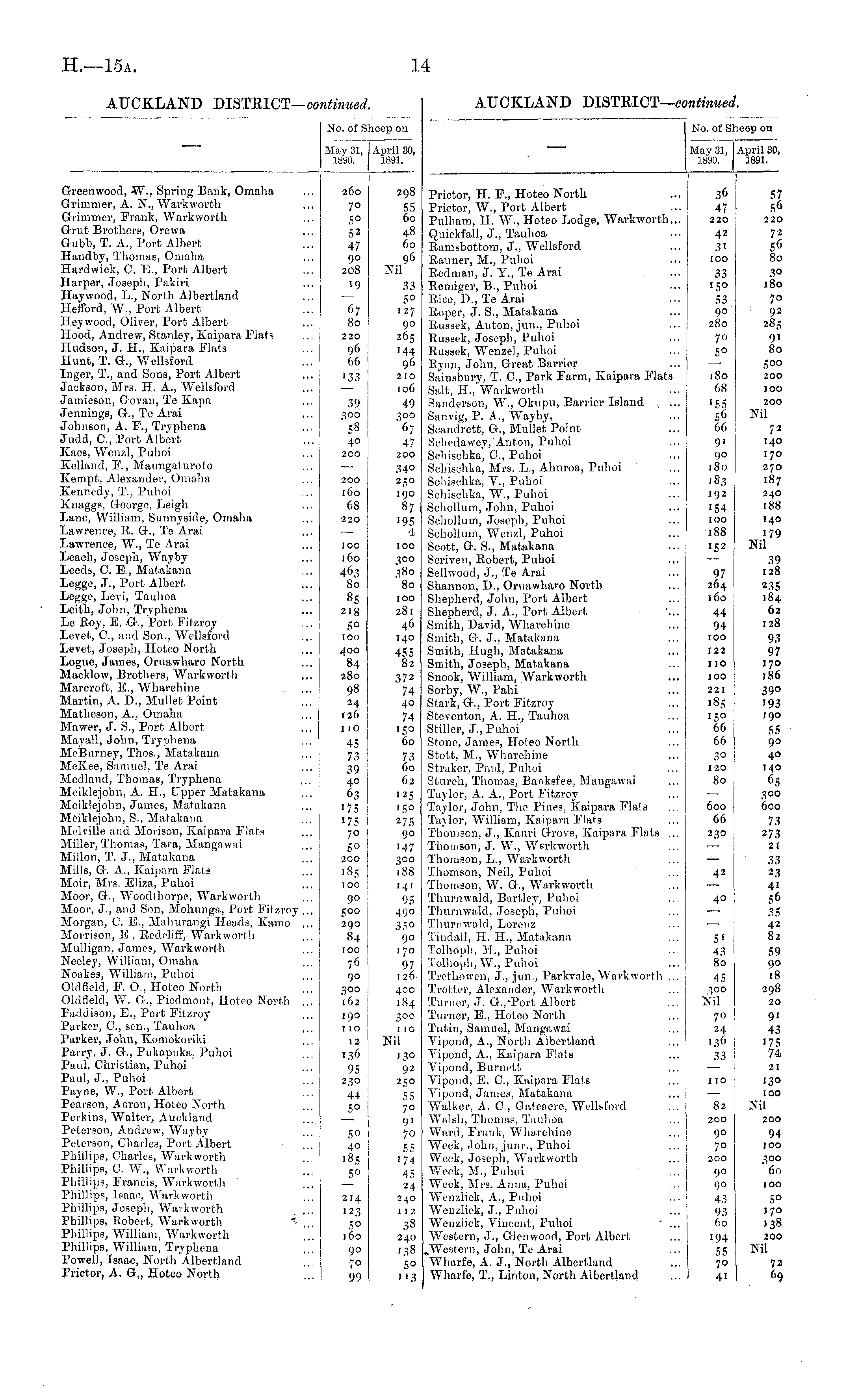 io. o: ieep on May 31, April 30, 1890. 1891. Motor, H. F., Hoteo North Prictor, W., Port Albert Pnlham, H. W., Hoteo Lodge, Warkworth... Quickfall, J., Tauhoa Eamsbottom, J., Wellsford Bauner, M., Pulioi Redman, J. Y., Te Aral Remiger, E., Pulioi Eioe, D., Te Arai Roper, J. S., Matakana Bussck, Anton, jun., PuJioi Bussek, Joseph, Pulioi Russek, Wenzel, Pulioi Ryan, John, Great Barrier Sninsbury, T. C, Park Farm, Kaipara Flats Salt, H.,'Wavkwovth Sanderson, W., Okupu, Barrier Island Sanvig, P. A., Wayby, Scandrett, G., Mullet Point Sehedawey, Anton, Puhoi Sehischka', C, Pnhoi Schischka, Mrs. L., Ahuroa, Puhoi Scliischka, V., Puhoi Schisehka, W., Puhoi Scholium, John, Puhoi Scholium, Joseph, Puhoi Scholium, Wenzl, Puhoi Scott, Gk S., Matakana Soriven, Bobert, Puhoi Sellwood, J., Te Arai Shannon, D., Oruawharo North Shepherd, John, Port Albert Shepherd, J. A., Port Albert Smith, David, Wharehine Smith, G. J., Matakana Smith, Hugh, Matukana Smith, Joseph, Matakana Snook, William, Warkworth Sorby, W., Pahi Stark, G., Port Fitzroy Stcventon, A. H., Tauhoa Stiller, J., Puhoi Stone, James, Holeo North Stott, M., Wharehine Straker, Paul, Pulioi Starch, Thomas, Banksfee, Mangavvui Taylor, A. A., Port Fitzroy Taylor, John, The Pines, Kaipara Flats Taylor, William, Kaipara Flats Thomson, J., Kauri Grove, Kaipnra Flats ... Thomson, J. W., Work-worth Thomson, L., Warkworth Thomson, Neil, Puhoi Thomson, W. G., Warkworth Thurnwald, Bartley, Puhoi Thurnwald, Joseph, Pulioi Thurnwald, Loreuz Tindall, H. H., Matakana Tolhoph, M., Puhoi Tolboph.W., Puhoi Trethowen, J., jun., Parkvale, Warkworth ... Trotter, Alexander, Warkworth Turner, J. G.,*Port Albert Turner, E., Hoteo North Tutin, Samuel, Mangawai Vipond, A., North Albertland Vipond, A., Kaipara Flats Vipond, Burnett Vipond, E. C, Kaipara Flats Vipond, James, Matakana Walker, A. C, Gatenere, Wellsford Walsh, Thomas, Tauhoa Ward, Frank, Wharehine Week, John, junr., Puhoi Week, Joseph, Warkworth Week, M., Puhoi Week, Mrs. Amm, Puhoi Wcnzliok, A., Puhoi Wenzliek, J., Puhoi Wenzlick, Vincent, Puhoi Western, J., Glenwood, Port Albert .Western, John, Te Arai Wharfe, A. J,, North Albertland Wharfe, T., Ljnton, North Albertland 36 47 220 42 31 IOO 33 '5° F:3 90 280 70 5° 180 68 56 66 91 90 180 183 192 154 100 188 !5 2 97 264 j6o 44 94 100 122 no 100 221 ■85 '5° 66 66 3° 120 80 SI 220 7 2 ,S6 8O 3° 180 70 92 28S 91 80 50O 200 10O 200 Nil 72 140 170 270 187 240 188 140 179 Nil 39 128 184 62 128 93 97 170 186 39° 193 190 55 90 40 140 65 300 600 73 273 21 600 66 230 42 40 33 23 4i 56 35 42 82 43 80 45 300 Nil 70 24 136 33 59 9° 18 298 20 9i 43 175 74 21 110 82 130 100 Nil 200 200 90 70 200 94 100 qoo '60 90 90 43 93 60 100 5° 170 ■38 200 Nil 194 55 70 4i 72 69