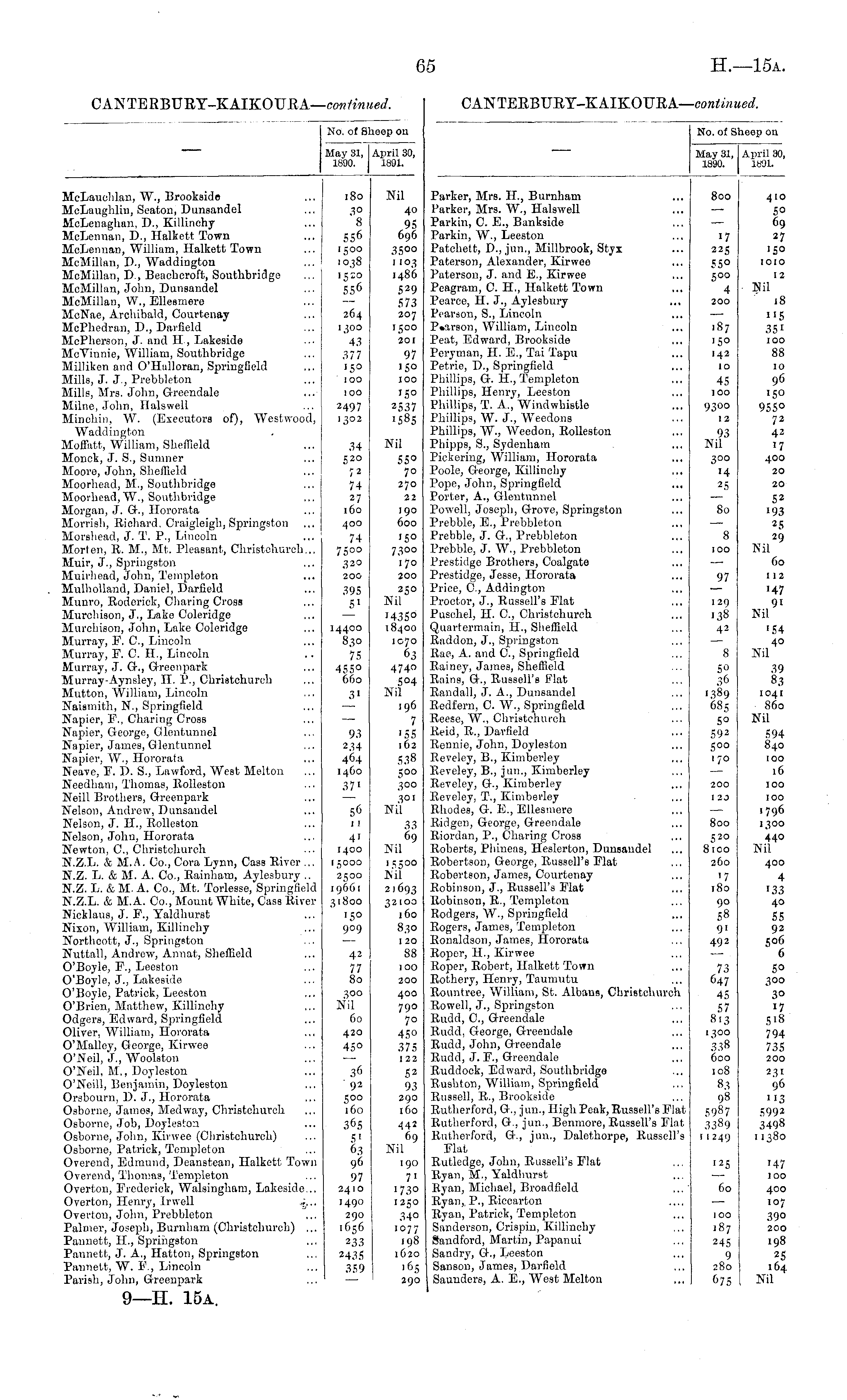 No. of Sheep on May 31, April 80, 1890. 1891. Parker, Mrs. II., Burnham Parker, Mrs. W., Halswell Parkin, C. E., Bankside Parkin, W., Leeston Patchett, D., jun., Millbrook, Styx Paterson, Alexander, Kirwee Paterson, J. and E., Kirwee Peagram, C. H., Halkett Town Pcarce, II. J., Aylesbury ,,, Pearson, S., Lincoln P» cir8on, William, Lincoln Peat, Edward, Brookside Peryman, H. E., Tai Tapu Petrie, I)., Springfield Phillips, G. II., Templeton Phillips, Henry, Leeston Phillips, T. A., Windwbiatle Phillips, W. J., Wecdons Phillips, W., Weedon, Rolleston Phipps, S., Sydenham Pickering, William, Hororata Poole, George, Killinehy Pope, John, Springfield ... Porter, A., Glentunnel Powell, Joseph, Grove, Springston Prebble, E., Prebbleton Prebble, J. G., Prebbleton Prebble, J. W., Prebbleton Prestidge Brothers, Coalgate Prestidge, Jesse, Hororata Price, C, Addington Proctor, J., Russell's Flat Puschel, H. 0., Christchurch Quartermain, H., Sheffield Raddon, J., Springston Rao, A. and C, Springfield Rainey, James, Sheffield Rains, G\, Russell's Flat Randall, J. A., Dunsandel Redfern, C. W., Springfield Reese, W., Christchureh Reid, R., Davfield Rennie, John, Doyleston Keveley, B., Kimberley Reveley, B., jun., Kiraberley Reveley, G., Kimberley RcTeley, T., Kimberley Rhodes, G-. E., Ellesmere Ridgen, George, Greendale Riordan, P., Charing Cross Roberts, Phineas, Heslerton, Dunsandel Robertson, George, Russell's Flat Robertson, James, Courtenay Robinson, J., Russell's Flat Robinson, R., Templeton Rodgers, W., Springfield Rogers, James, Templeton Ronaldson, James, Hororata Roper, H., Kirwee Roper, Robert, Halkott Town Rothery, Henry, Taumutu Roiintree, William, St. Albans, Christchurch Rowell, J., Springston Rudd, C, Greendale Rudd, George, Greendale Rudd, John, Greendale Rudd, J. F., G-reendale liuddock, Edward, Southbridge Rusliton, William, Springfield Russell, R., Brookside Rutherford, G., jun., High Peak, Russell's Flat Rutherford, G., jun., Benmore, Russell's Flat Rutherford, G-., jun., Dalothorpe, Russell's Flat Rutledge, John, Russell's Flat Ryan, 11., Yaldlrarst Byan, Michael, Broadfield Ryan,. P., Riccarton Ryan, Patrick, Templeton Sanderson, Crispin, Killinchy Sandford, Martin, Papanui Sandry, G., Leeston Sanson, James, Davfield Saunders, A. E., West Melton 800 4io 5° 69 2? 1010 l1 225 55° 500 4 200 12 Nil 18 187 150 142 10 "5 35 « ioo 88 45 100 9300 12 93 Nil 10 9 6 '5° 955° 72 42 '7 400 20 20 300 '4 2.5 80 8 52 193 2 5 29 Nil Co 100 97 112 129 13S 42 '47 91 Nil i54 40 Nil 8 5° 36 1389 685 5° 592 500 170 39 83 1041 860 Nil 200 594 840 100 16 ]00 100 1796 ■30° 440 Nil I 2J 800 520 8lOO 260 '7 180 90 58 91 492 73 647 45 57 8.3 1 338 600 108 83 98 5987 3389 1 1249 400 4 '33 40 55 92 506 6 50 300 3° '7 518 794 735 200 23 1 96 113 5992 3498 11380 I25 60 i47 100 100 187 245 9 280 675 400 107 39° 200 198 25 164 Nil