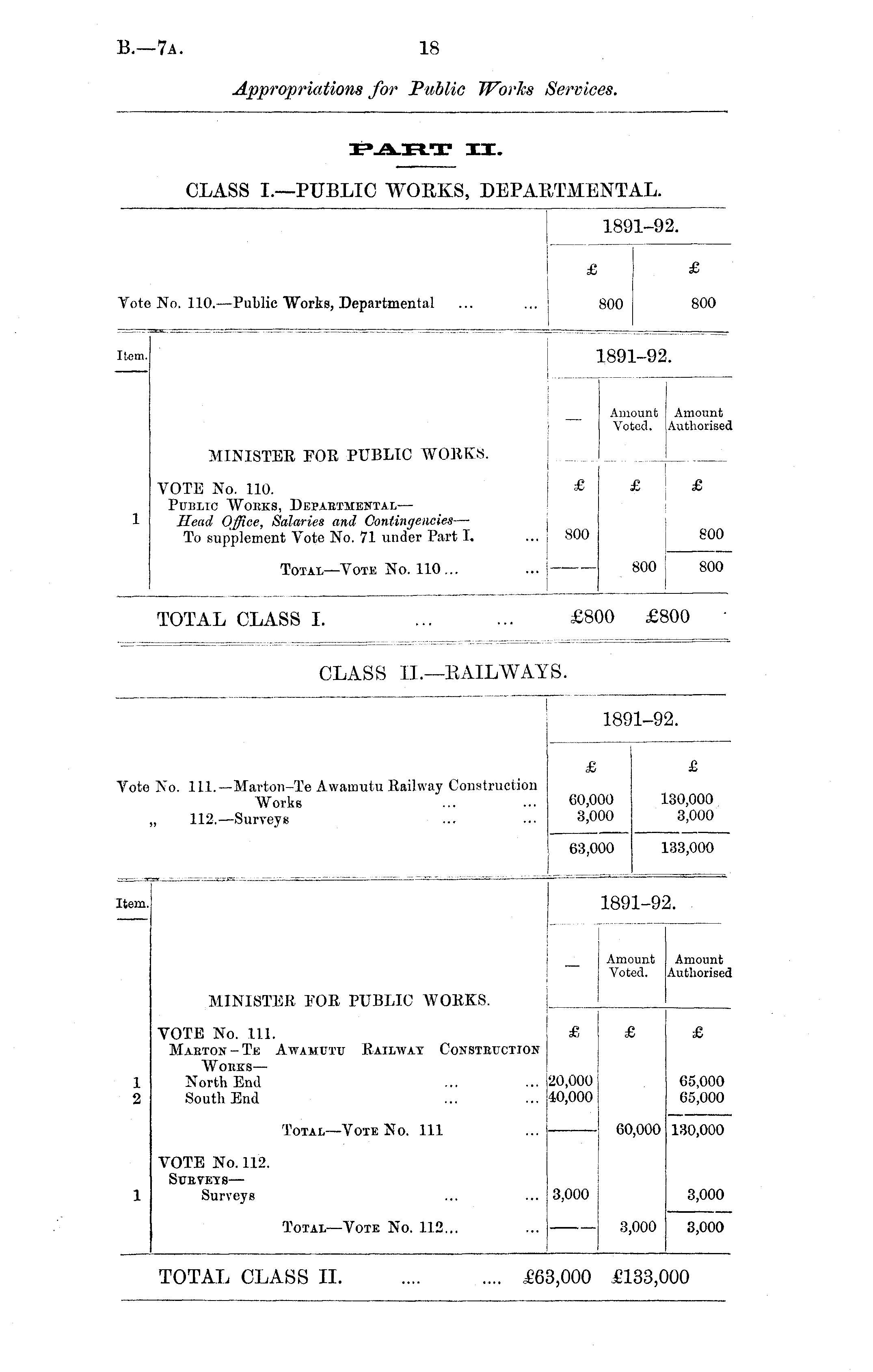 1891-92. No. 110.—Public Works, Departmental £ t 800 £ 800 Vot. Item. 891-9: Amount Voted. Amount Authorised i MINISTEE FOR PUBLIC WORKS. VOTE No. 110. Public Wouks, Depaethental— Head Office, Salaries and Contingencies —■ To supplement Vote No. 71 under Part I. £ ... 800 £ l_ _ ! £ 800 ■ Total—Vote No. 110... 800 800 TOTAL CLASS I. £8' i0 £800
