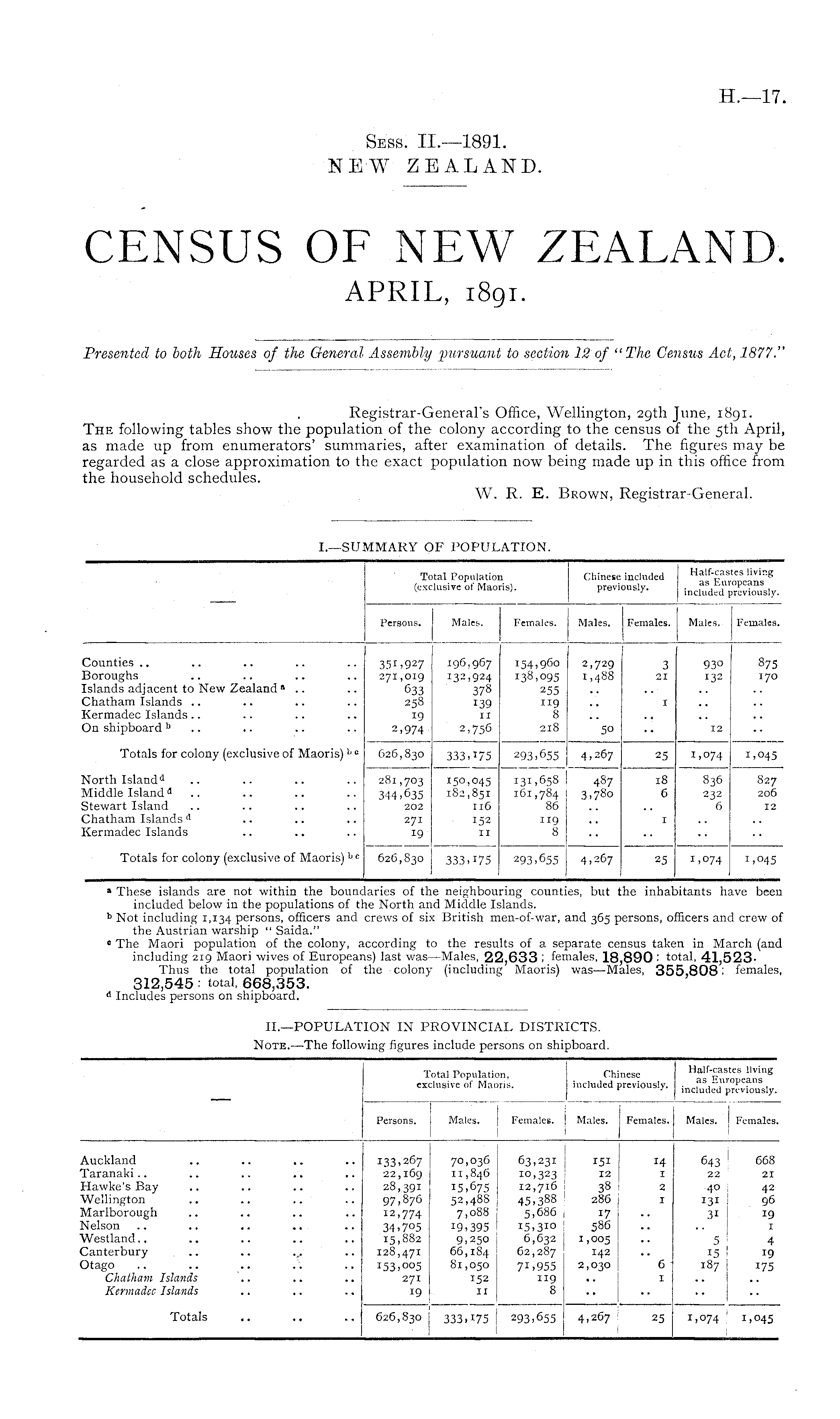 CENSUS OF NEW ZEALAND. APRIL, 1891.