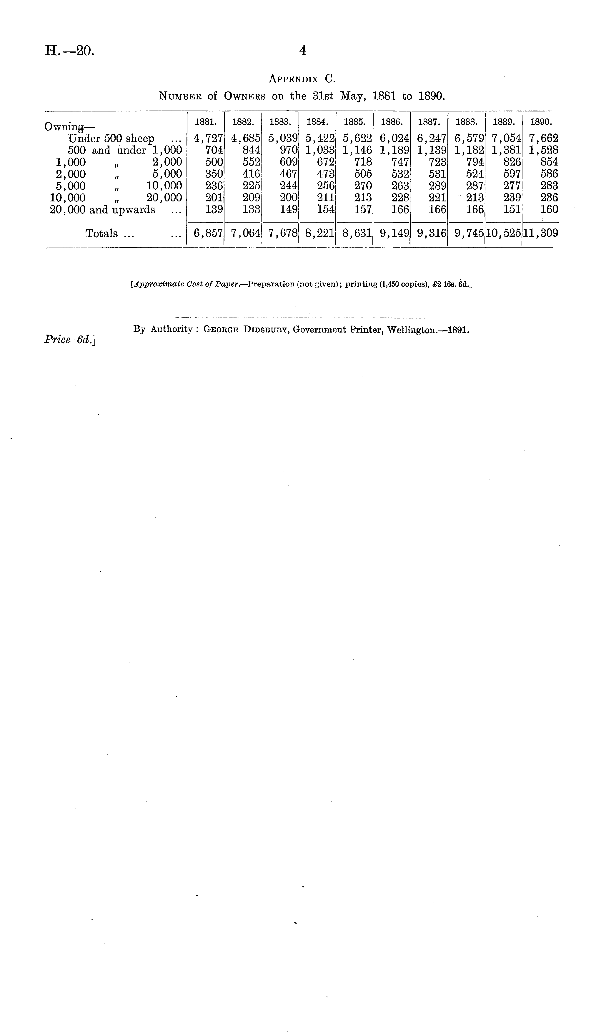 Appendix C. Number of Owners on the 31st May, 1881 to 1890.